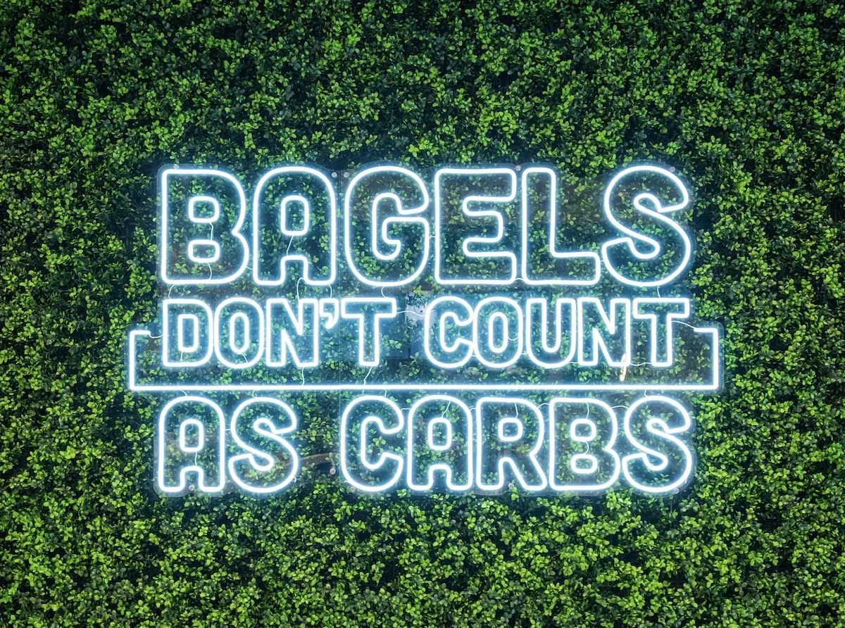 The frequently snapped “Bagels Don’t Count As Carbs” signage is coming to Hallandale Beach, too.
