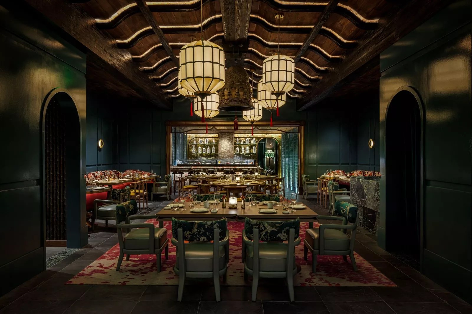 Bishop Design has created Mika’s stunning and serene dining room in Coral Gables. With natural wood tones, olive trees, and dim lighting, the room is spacious, serene, and upscale. Chinese restaurant Mimi Chinese was designed by Kayla Pongrác Studio Photo by Daniel Neuhaus