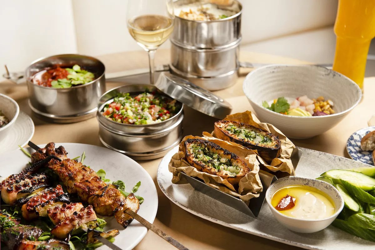 NYC-based GPG Hospitality has opened Mazeh, a restaurant that offers Middle Eastern tapas. The menu at Mazeh features signature dishes such as arayes, ground lamb or grilled fish inside fresh pita and topped with amba; falafel cigars wrapped in brick pastry and served with tahini; and a tiffin box that holds an assortment of seasonal Middle Eastern dips and spreads served with fresh pita. Open for breakfast, the restaurant also offers breakfast boards, including the Middle Eastern breakfast with eggs, Israeli salad, labneh, avocado, and tahini. 7 a.m. to midnight Monday through Saturday and 7 a.m. to 10 p.m. Sunday.