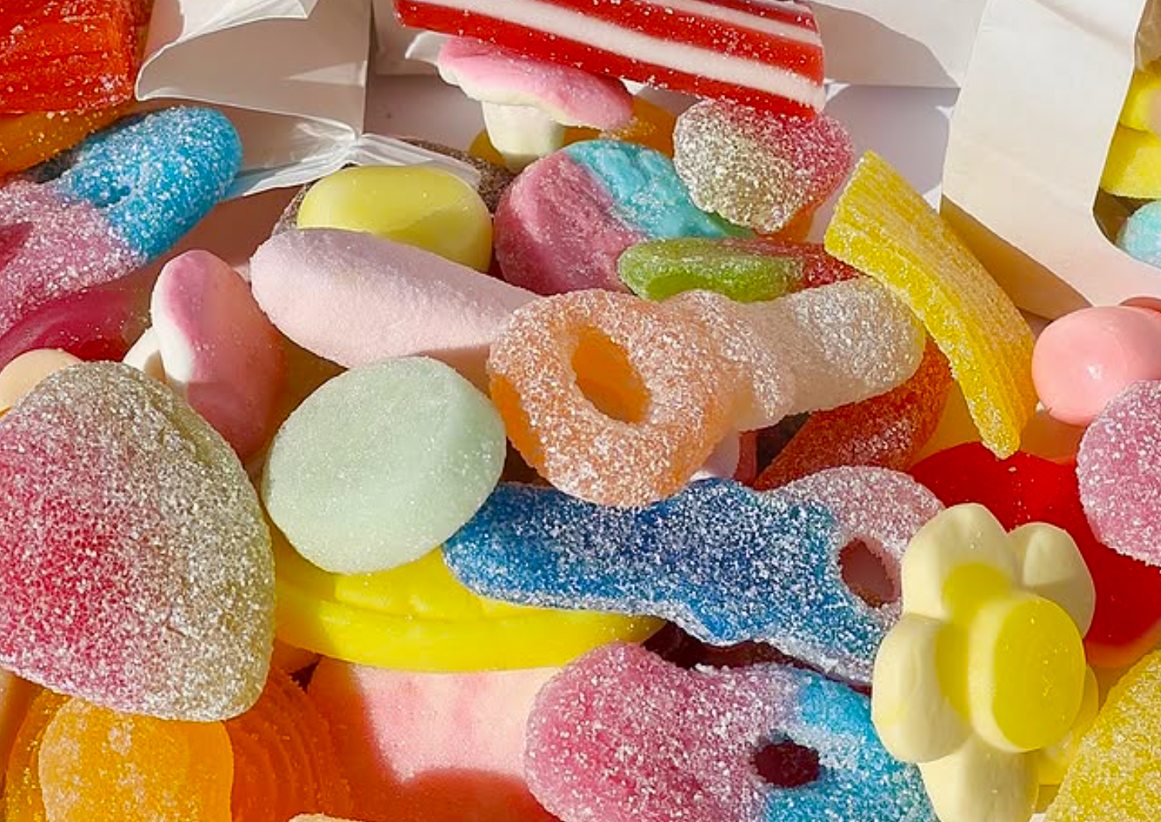 Inside the Gables shop, the centerpiece is a massive pick-and-mix wall where customers scoop their own bags of candy. Favorites include sour skulls, chocolate-covered marshmallows, and chewy classics.