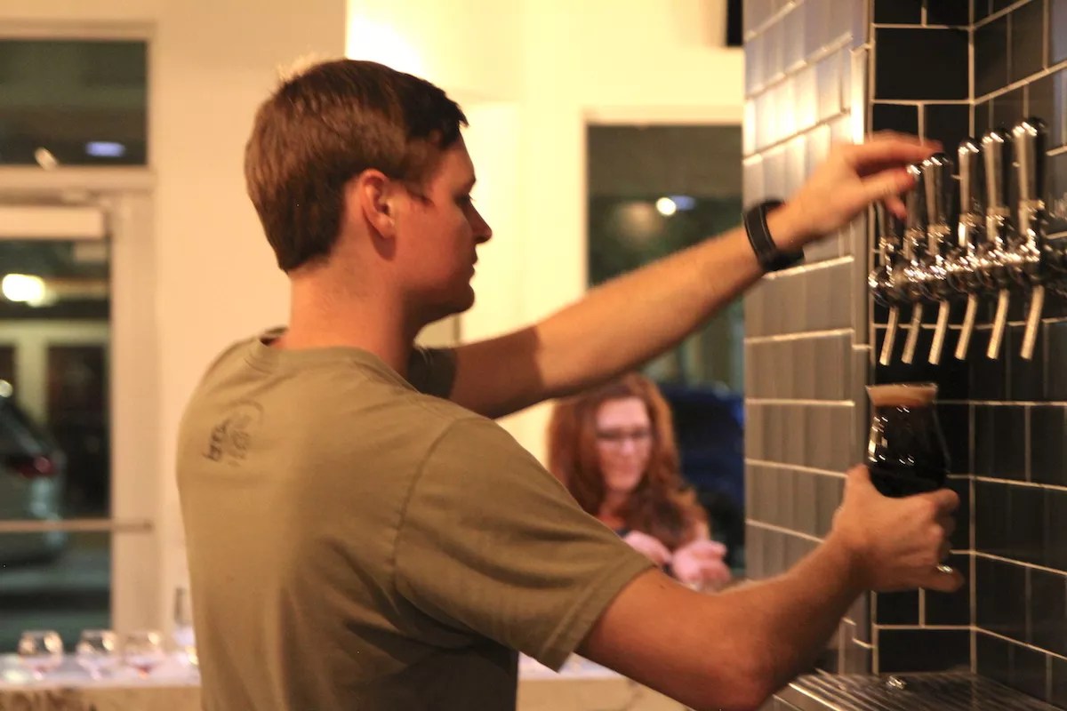 Odd Breed co-owner Matt Manthe pours beer during the brewery’s opening night.