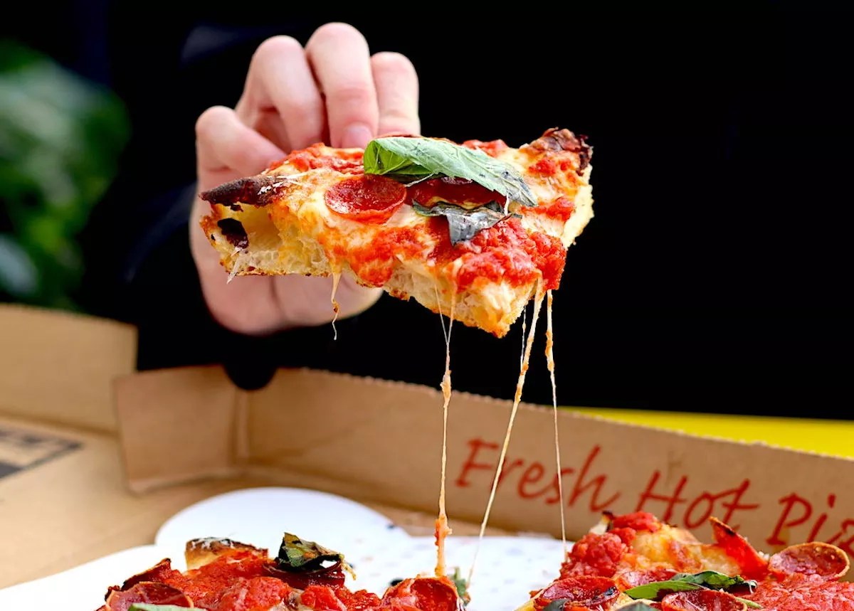 But that doesn’t happen. The doughy slice seems to defy the law of gravity with a one-hand hold test, supporting a deluge of toppings without even a hint of bottoming out.