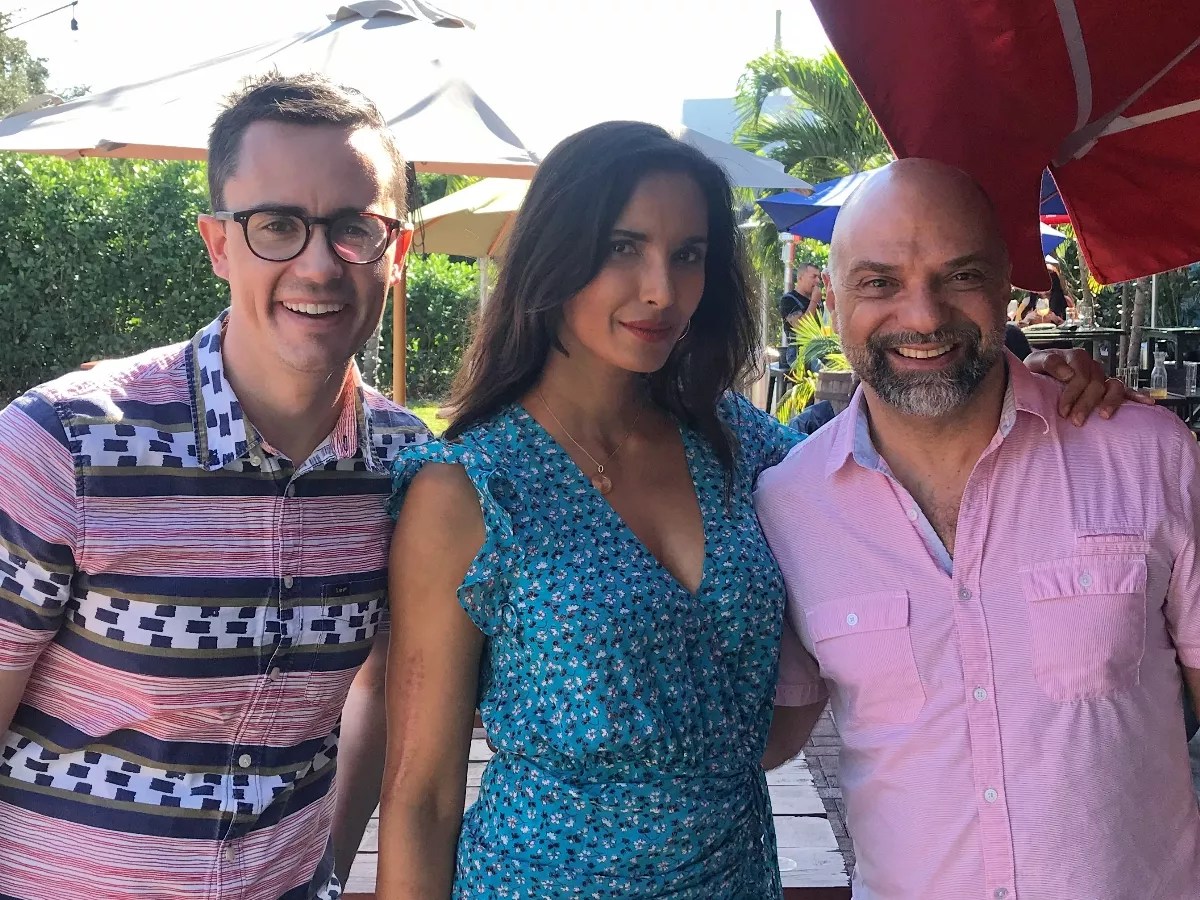 R House’s Owen Bale (left) and Rocco Carulli (right) pose with Padma Lakshmi