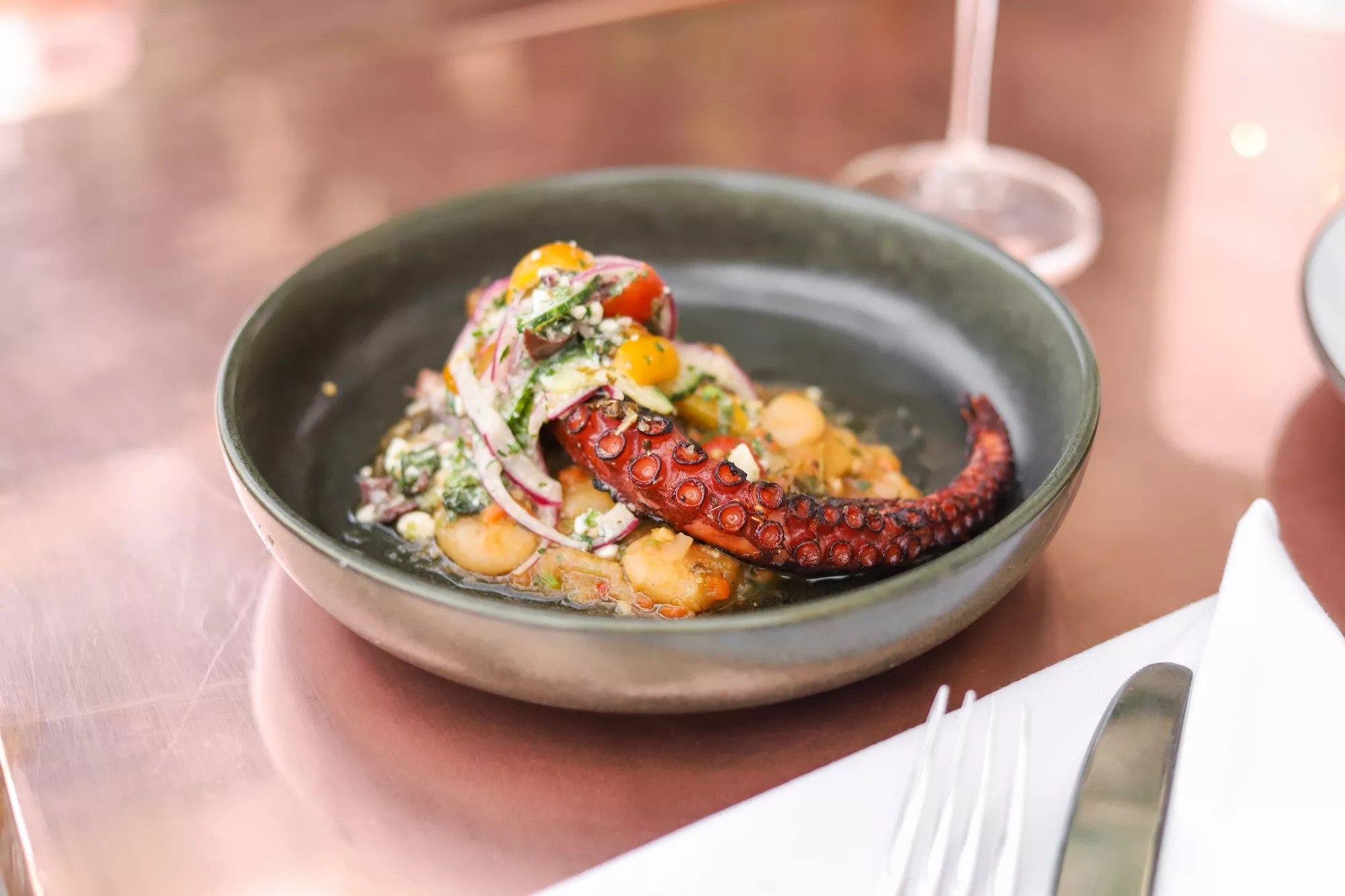 The menu changes seasonally; perennial favorites include the USDA prime burger and sweet corn and ricotta agnolotti, the latter bathed in a rich, mildly piquant espelette butter sauce dotted with nibs of bacon. The restaurant is also known for its happy hour, when guests can pair margaritas or dirty martinis with the chef’s short rib empanadas, a simple ceviche, or the hot dog panini – a grilled and sliced Hebrew National dog paired with a housemade panini slathered in garlic aioli, a trio of mustards, grilled onions, sauerkraut, and melty Gruyère.