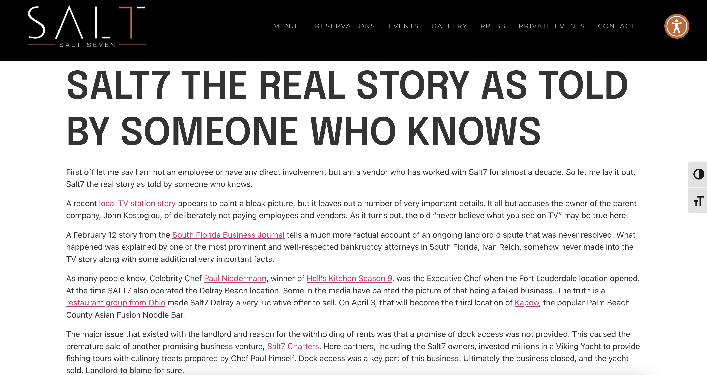 Written by a “vendor who has worked with Salt 7 for almost a decade,” this new blog post on Salt 7’s website claims key details were left out, misrepresenting the situation – and even claims there are allegations against the former Salt 7 employee Crumbly. However, none of this has been proven to be true.