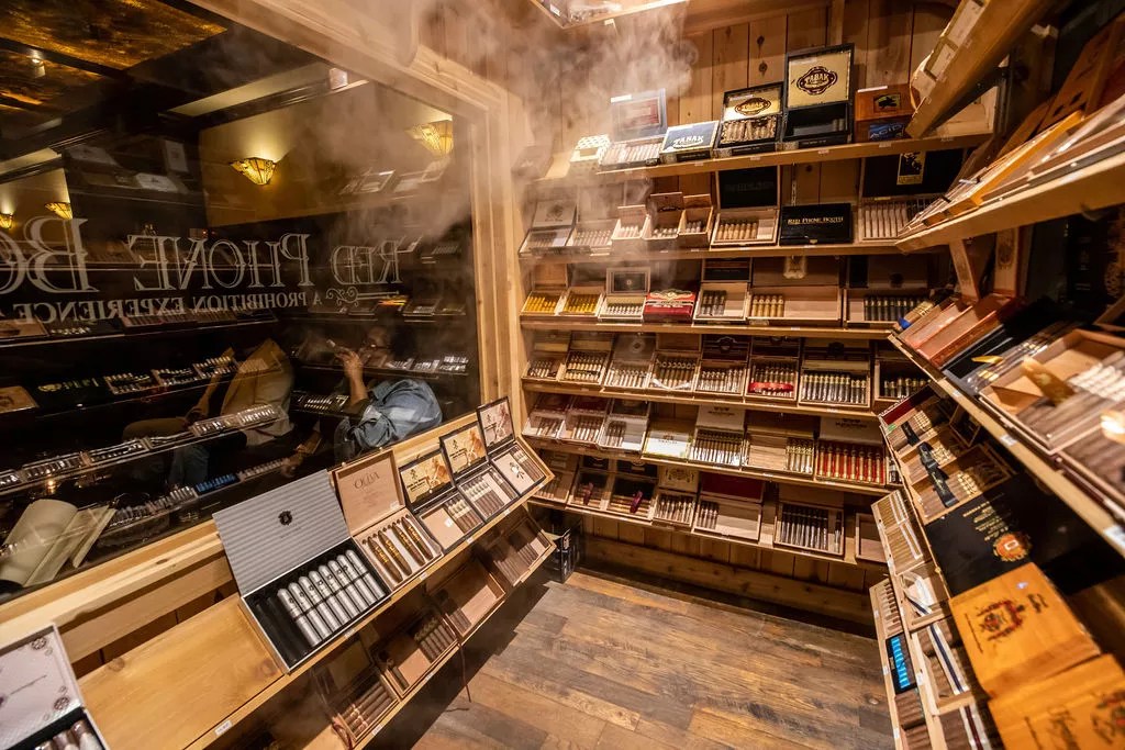 On the first floor of Red Phone Booth in Brickell guests can find a walk-in humidor that houses a selection of more than 200 cigars.