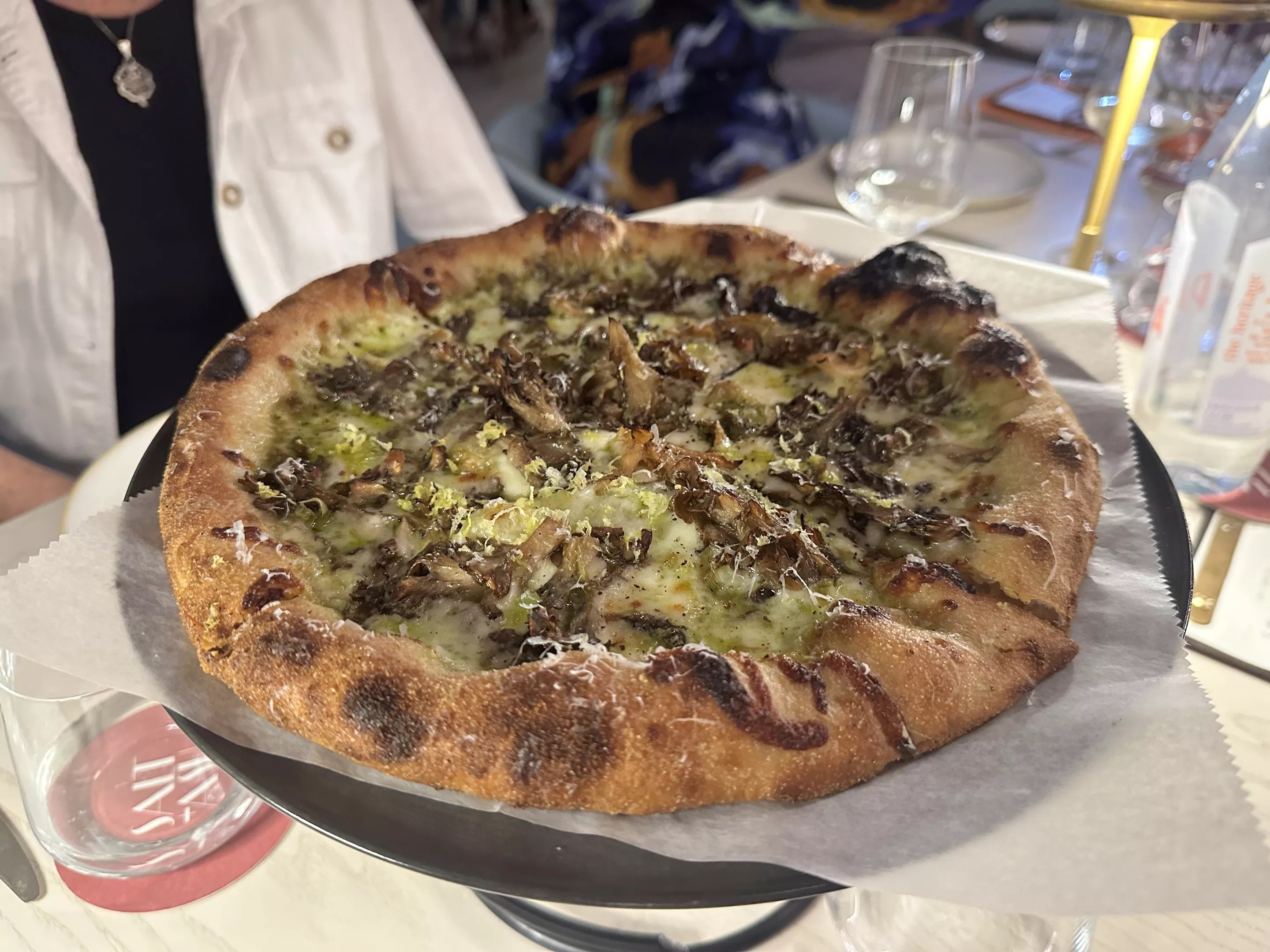 The charred maitake pizza demonstrates the “ash” part of the restaurant’s name with its intensely blistered crust and perfectly charred mushrooms.