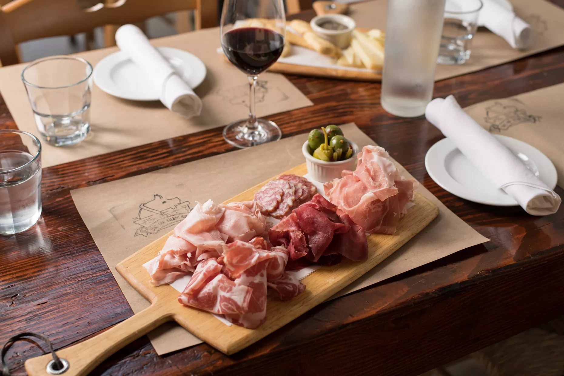 Masarin says Salumeria 104 is not only a true Italian trattoria but also a neighborhood salumi shop that offers unique cured meats and cheeses. Italian treats to-go include olives, baguettes, cheese, and plenty of salumi by the pound, including prosciutto di Parma, salame, and mortadella ($14 to $30).