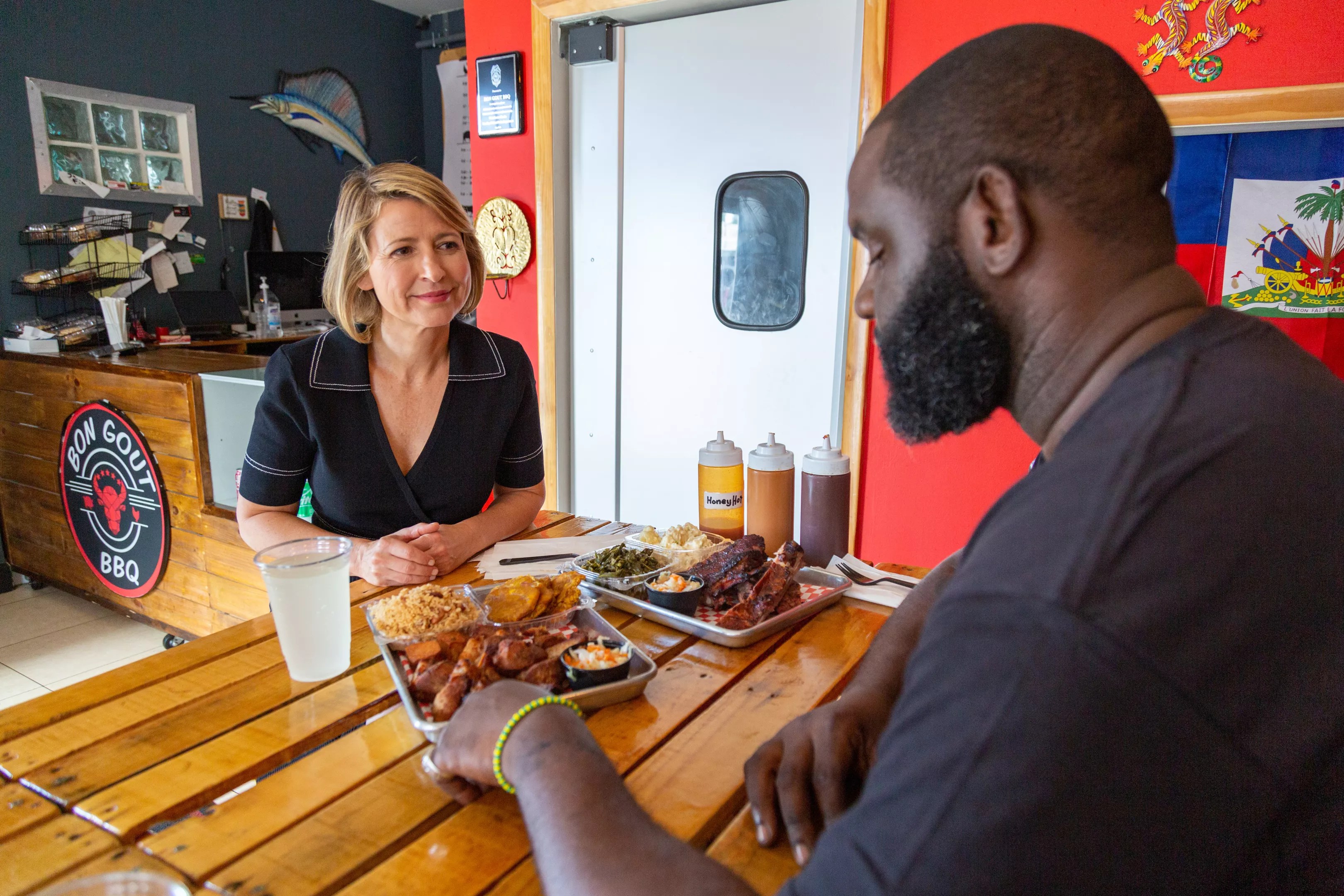 Brown with Jean “BJ” Lucel, one of the partners of Bon Gout BBQ