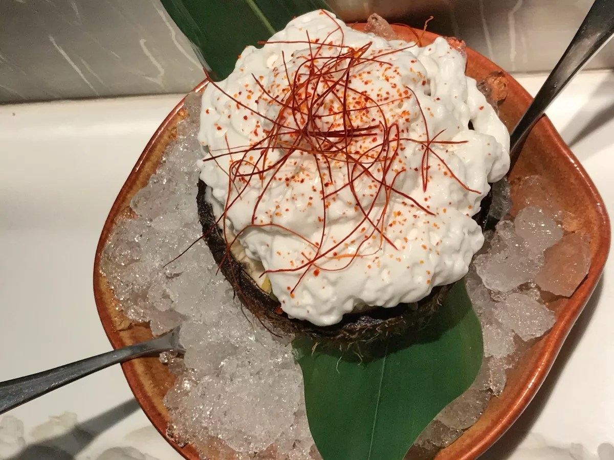 Order Katsuya’s ceviche, served in a coconut ($25) and topped with ponzu citrus foam. Its refreshing and bright flavors are wonderful after a day spent at the pool or snorkeling in Nassau’s crystal-blue waters. Surprisingly, the restaurant had a lack of locally caught seafood.