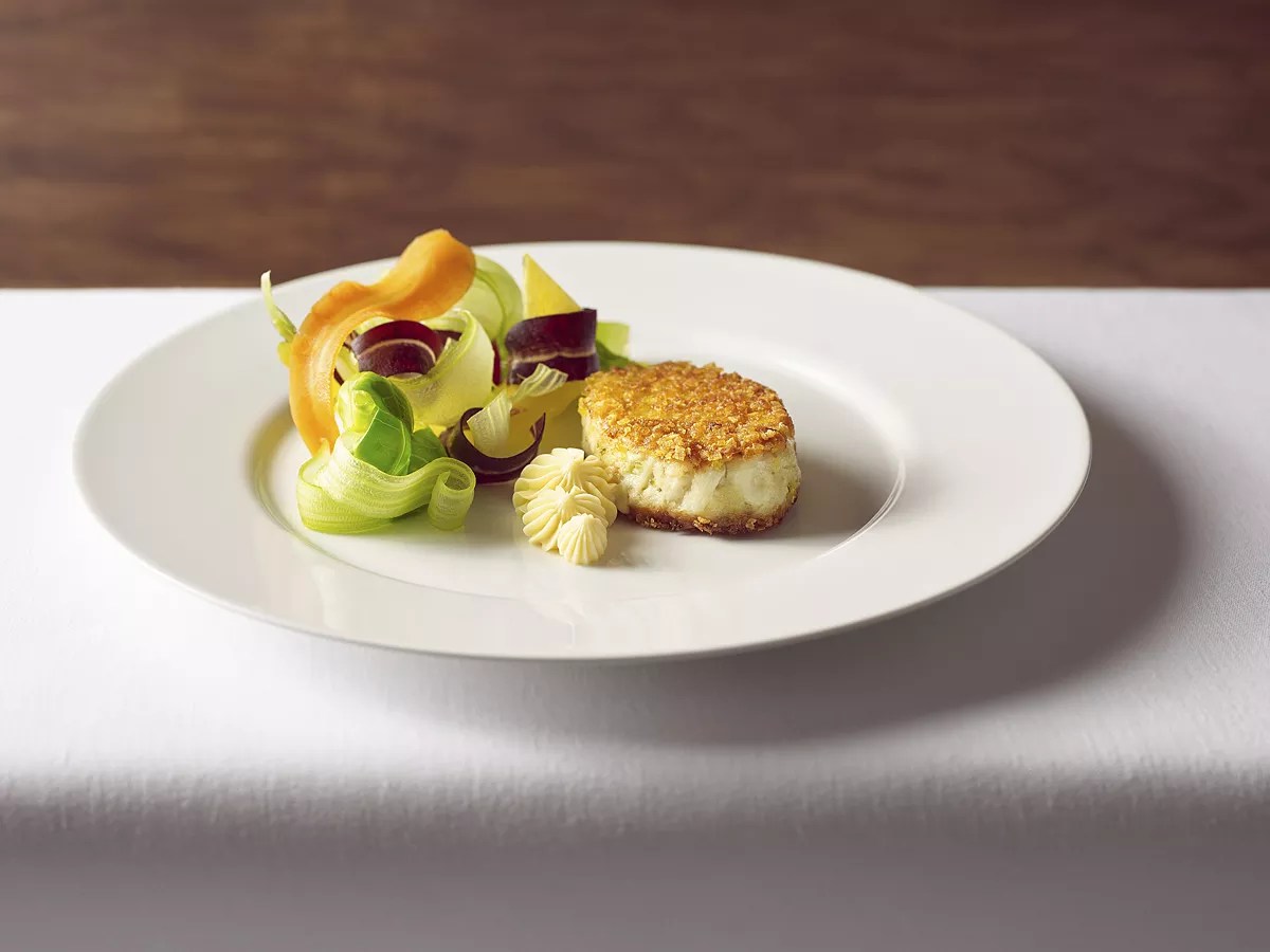 The warm soft-boiled egg is the restaurant’s most popular appetizer. Priced at $46, the dish includes a generous portion of caviar with a lightly boiled egg and a thick scoop of crème fraîche. The caviar comes from Keller’s own company, Regiis Ova, which sources from sustainable farms in California, Uruguay, and central China.