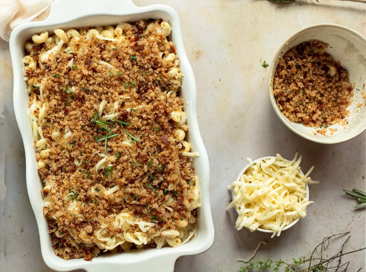 “If you’re inviting people over, don’t be shy to ask them to bring something,” says Tedesco. Guests can bring something easy like a pie or a side dish. If you’re asked to bring a side to Thanksgiving dinner, why not try this easy mac and cheese recipe from Familystyle Food. If you’re in a rush, says Tedesco, you can even buy pre-made mac and cheese and top it with the recipe’s herbaceous breadcrumb topping (we’ll never tell).