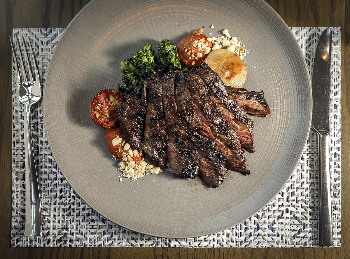 Dasher & Crank. Inside a light-pink shop in Wynwood, an Electro Freeze machine rumbles, and a yellowish cream made with vanilla bean, passionfruit, and ají amarillo erupts from the spout. Nearby, stored in a cooler set to 5 degrees Fahrenheit, are other creative ice-cream flavors, such as raspberry-wasabi, salted caramel and black licorice, and mint made black with activated charcoal. Here, the simple milk, sugar, and egg recipe is dressed up with bacon, candied hemp seeds, and miso honey. At any given time, the sleek store, located on Wynwood’s main drag, offers 18 unique flavors ($5 and up), including Salty Beach, a creamy blend made with coconut, sea salt, and graham cracker crumbs. Then there’s Fat Elvis, with peanut butter, banana, and Miami Smokers bacon, and Mary Jane Brownie, a mix of brownie chunks, molasses, peanut butter, and candied hemp seeds. 2211 NW Second Ave., Miami; dasherandcrank.com. Skirt steak at Boulud Sud