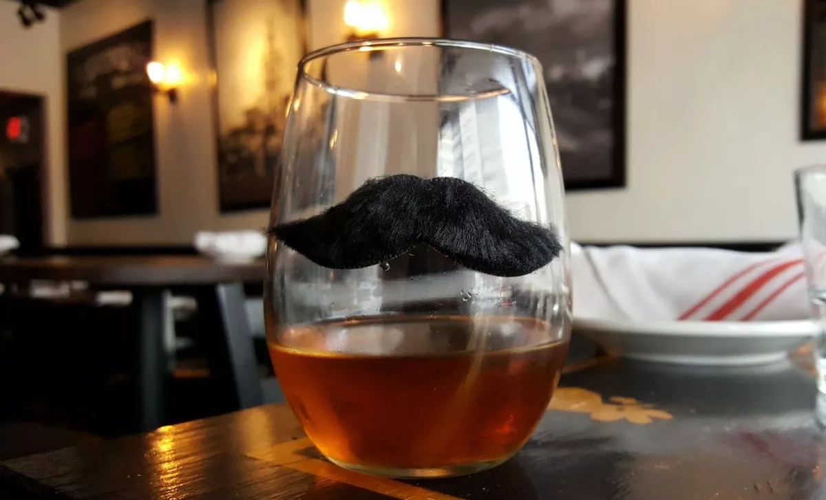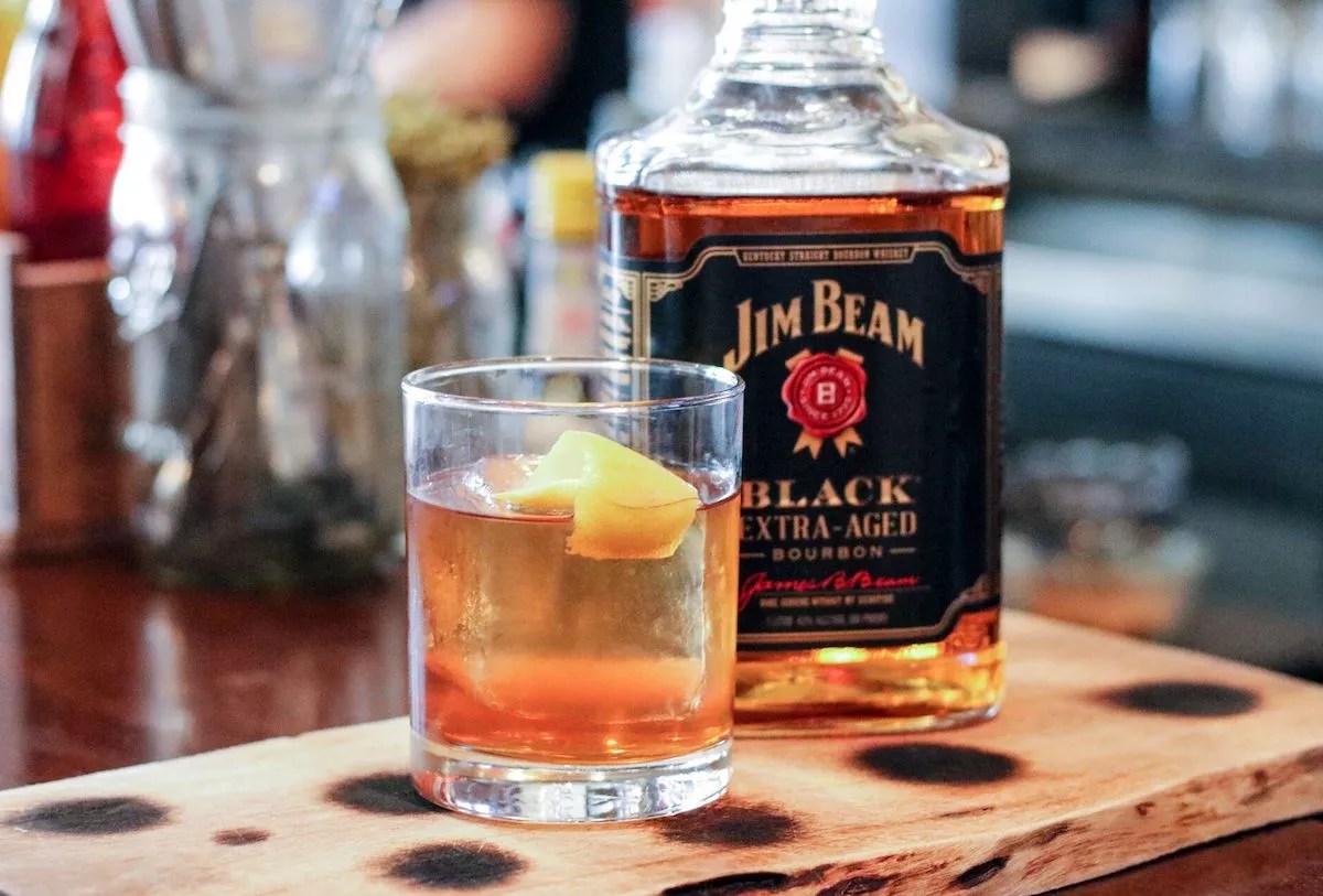 The Thompson: Jameson Black Barrel in place of gin, as well as Cocchi Americano, Carpano Anitca vermouth, green chartreuse, and orange bitters, served in a stemless wine glass with a furry mustache sticker so guests can look like the drink’s namesake. Me So Old-Fashioned Photo courtesy of the Local Craft Food & Drink