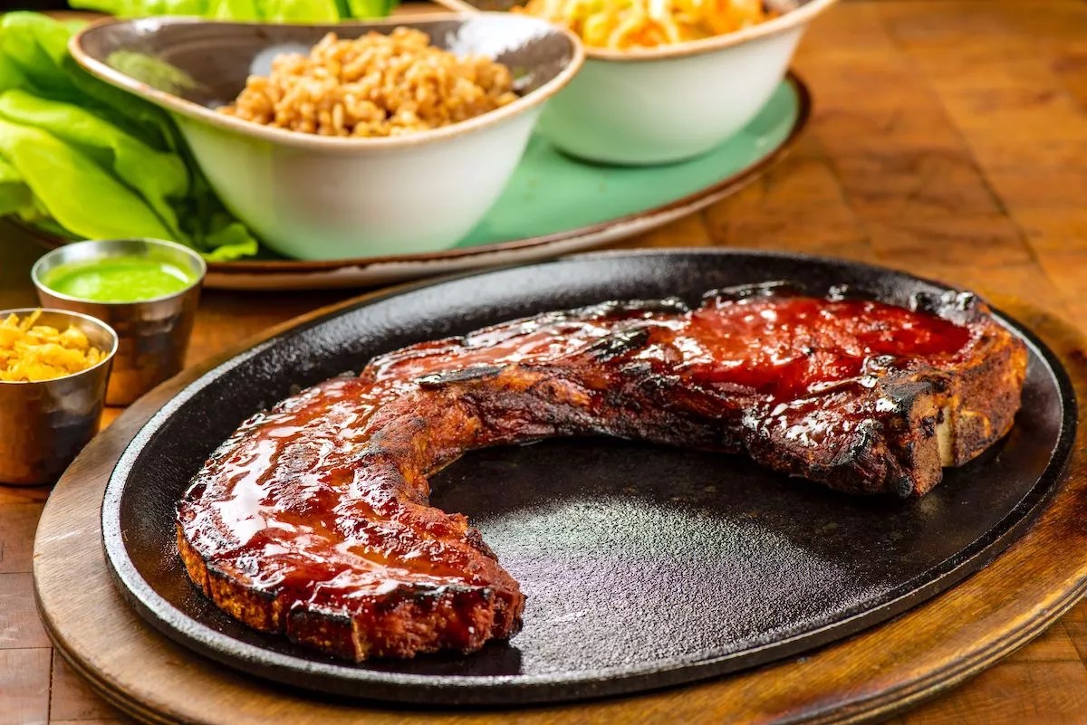 Chuleta at Toro Toro. At Richard Sandoval’s Toro Toro, located inside the InterContinental Miami hotel, pork lovers can “go ham” on a new dish. The restaurant just introduced a monster-sized, 32-ounce cut of porcine goodness known as the Chuleta – a giant meat Mohawk of pork loin, ribs, and a strip of pork belly all in one. The kitchen prepares the massive slab of Duroc pork by marinating it in an achiote-spiked mixture for up to 24 hours. While the traditional way to cook a