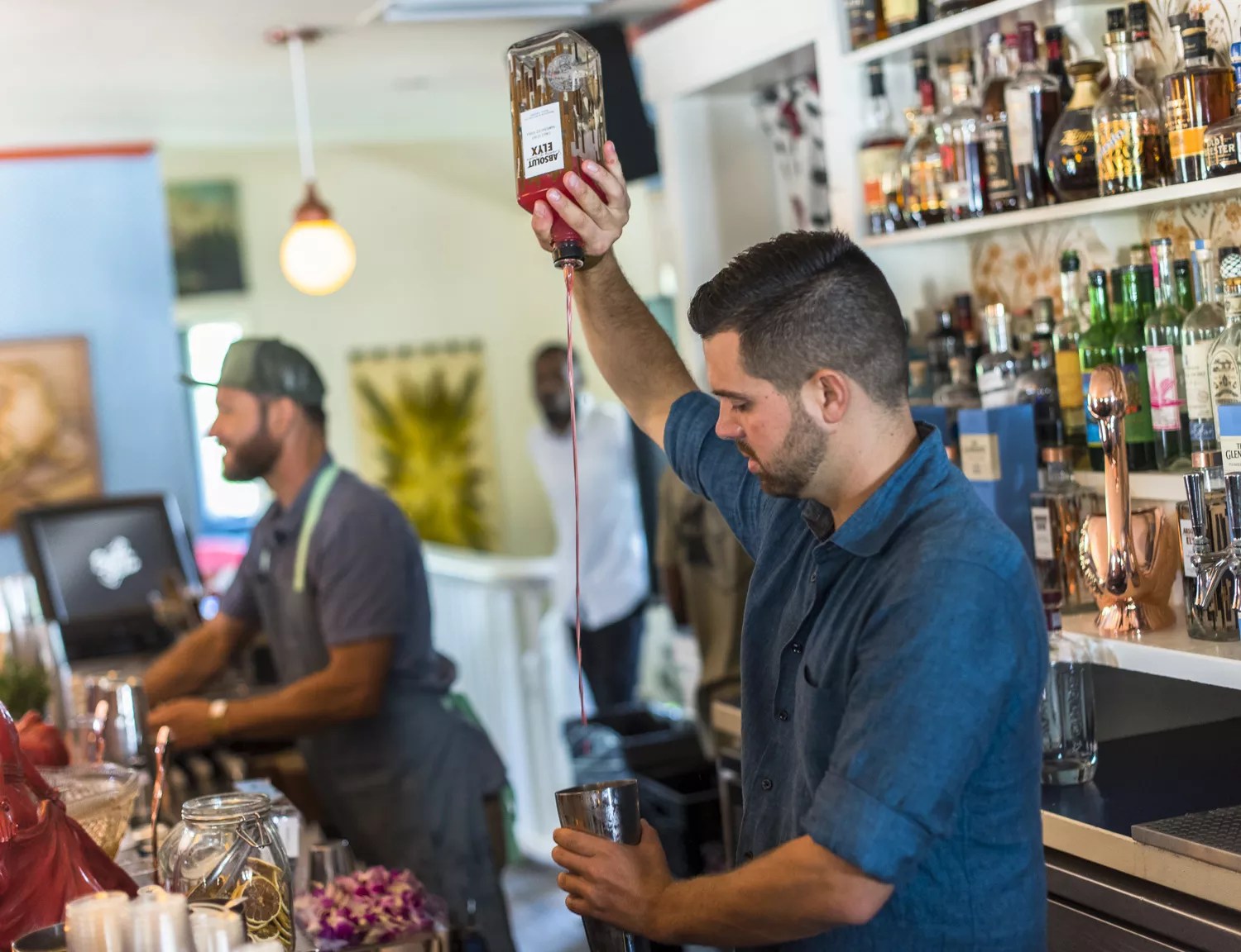From SoHo to SoBe Pop-Up Launch at Lure Fishbar. Since opening its doors five years ago, Lure Fishbar has become a staple on South Beach. To celebrate its anniversary, the restaurant has launched the “From SoHo to SoBe” menu experience, featuring a slate of popular dishes from Lure’s flagship location in New York City. Available from June 1 through July 31, highlights include the bay scallop crudo with jicama, green apple, jalapeño, and lime vinaigrette; lobster croutons served on toasted sourdough with golden garlic and chilies; a ten-ounce filet mignon; and a two-pound whole stuffed lobster with Dungeness crab filling, garlic-chili butter, and grilled lemon. Through July 31, at Lure Fishbar, 1601 Collins Ave., Miami Beach; 305-695-4550; lurefishbar.com. Slinging drinks. Alex Markow