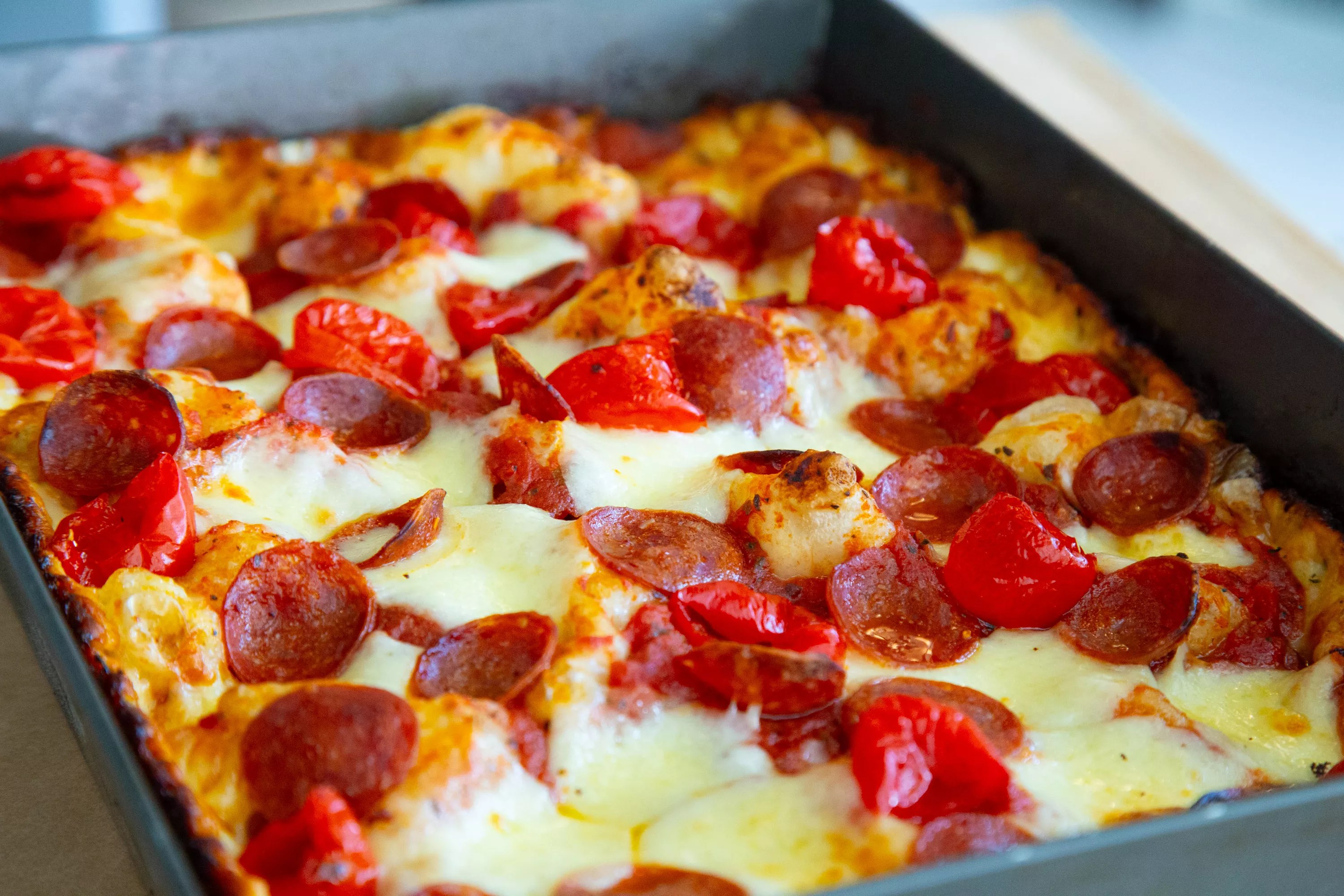 True Loaf’s Detroit-style pizza offerings include classic cheese and tomato sauce, as well as a slightly spicy rendition featuring Ezzo pepperoni cups and Peppadew peppers.