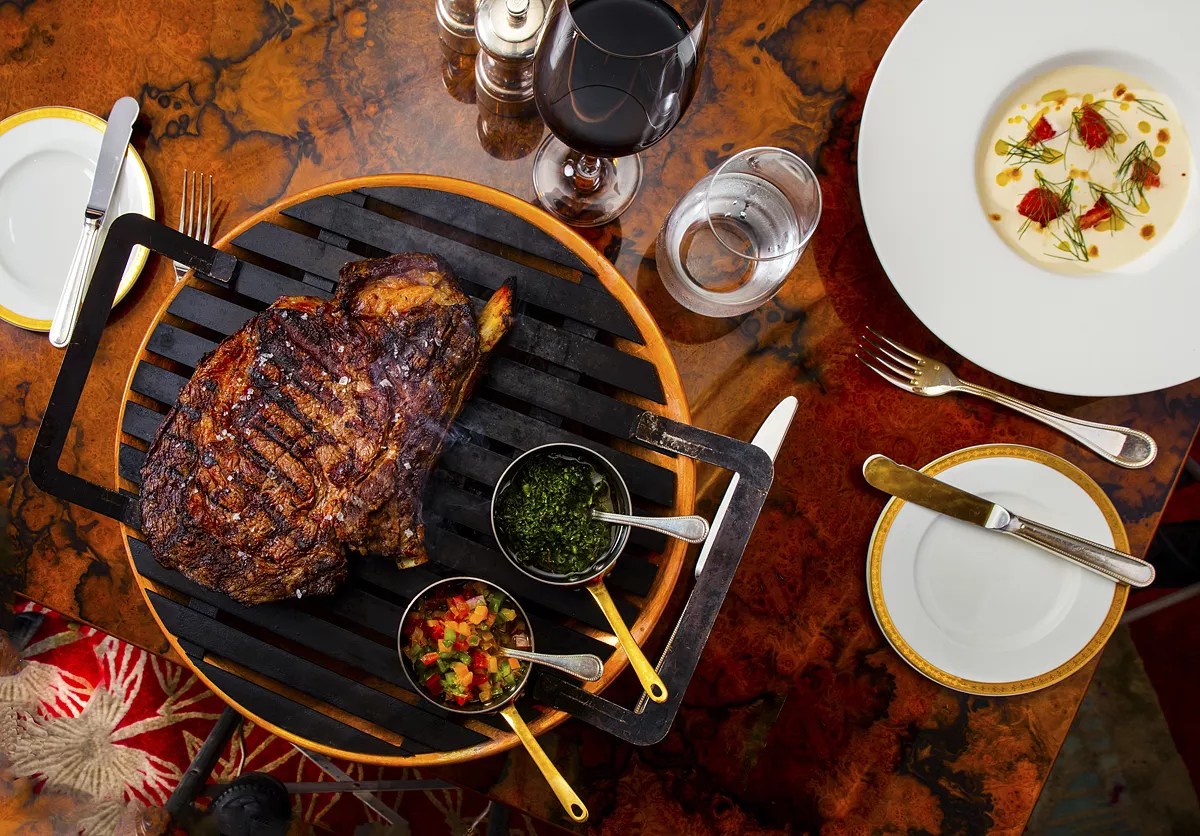 At Francis Mallmann’s Argentine restaurant in the Faena Hotel, begin your four-course meal with options such as iced seafood copper parrillada of oysters, prawns, and seared tuna, before enjoying a slow-cooked, bone-in ribeye and truffle potato. Finish your experience on a sweet note with a tower of tempting desserts including red berry and pistachio frozen pavlova and strawberry streusel. The dinner package starts at $115 per person.
