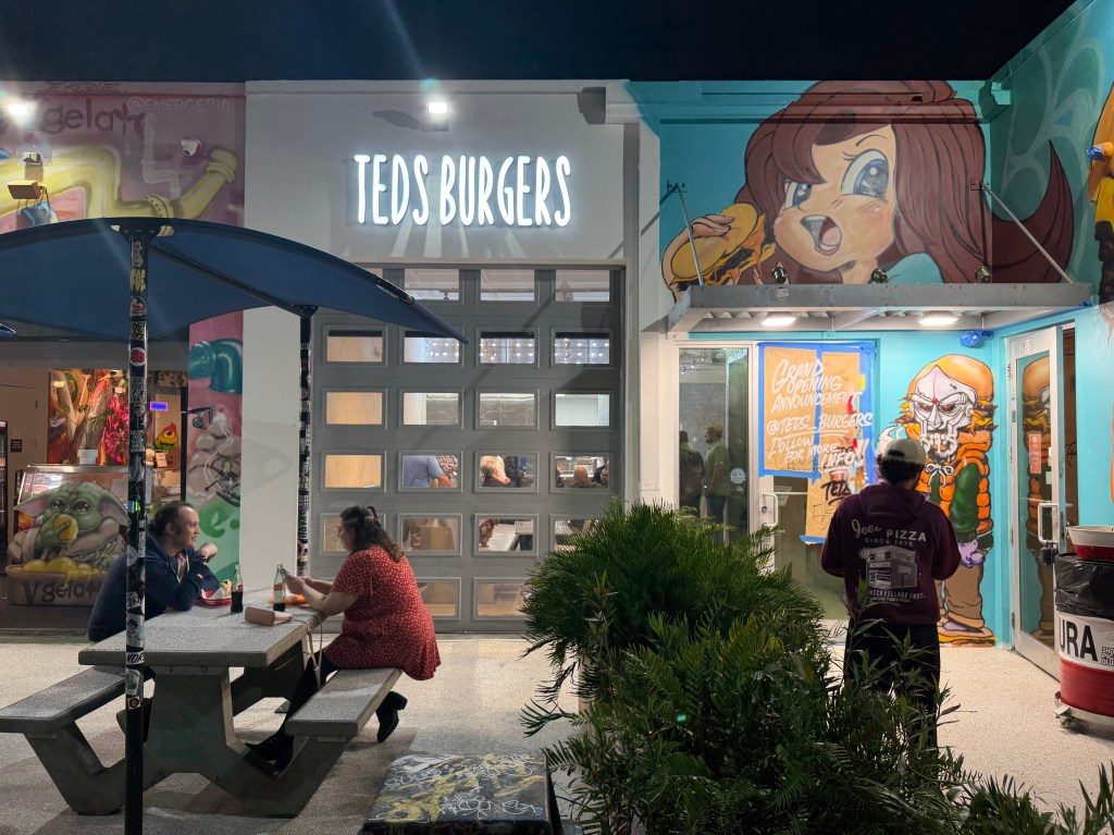 The new Ted’s Burgers takes over the former GoBistro space at 315 NW 25th St., right next to the Taco Stand. Inside, the room feels intentional without trying too hard. Grey-blue tiles anchor the space, textured walls carry a subtle lime wash finish, and the kitchen gleams with new appliances that mean business. There’s seating for about 50 guests split between indoor and outdoor tables, and more often than not, you’ll spot Armas himself alongside executive head chef Sergio Sotelo.