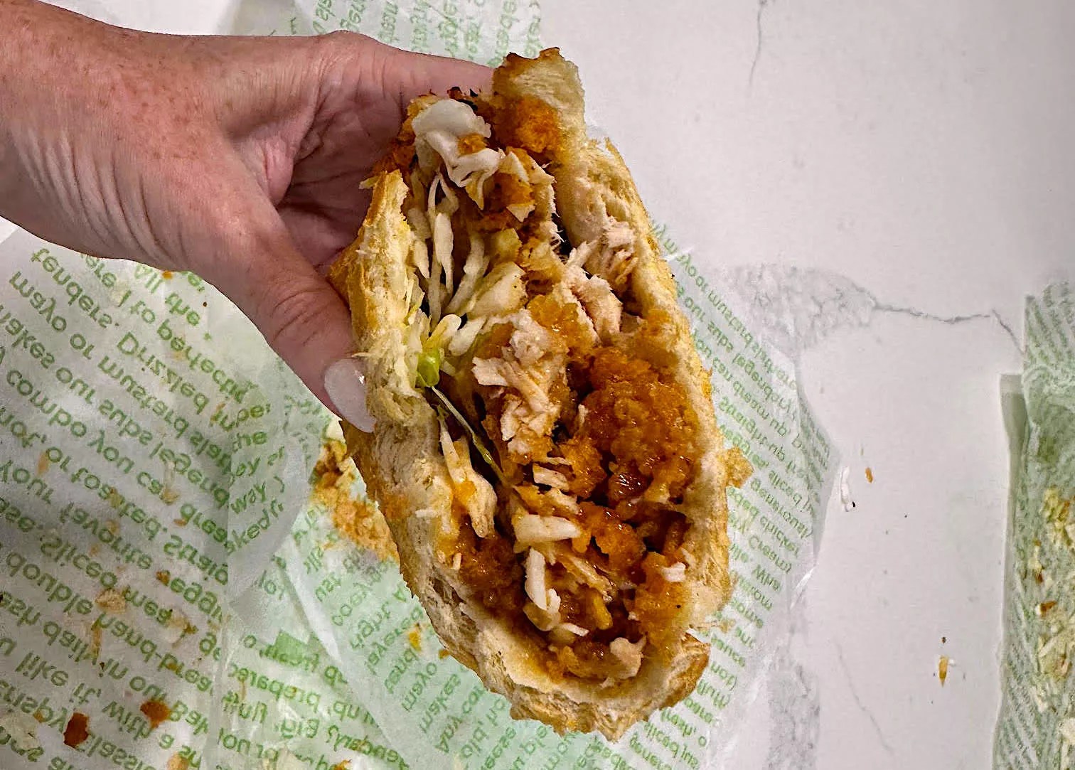 The “Peach Heat Chicken Tender” sub comes loaded with Publix’s “Peach Heat” chicken tenders on white bread, topped with chipotle gouda, coleslaw, and crispy jalapeños. On paper, it sounds like a winner. The reality? That’s another story.