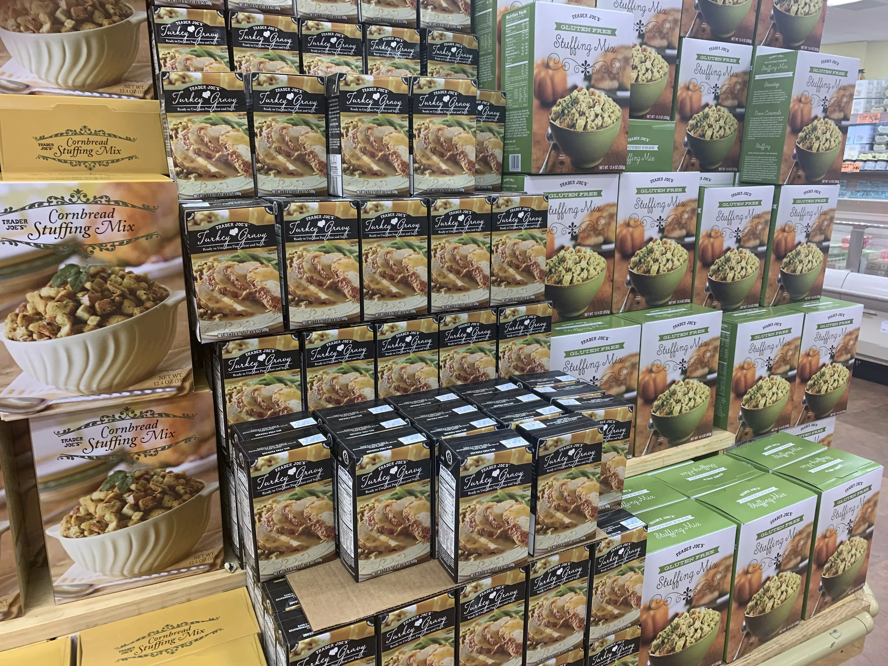 No table is complete without stuffing and green bean casserole. Choose between a cornbread stuffing mix ($3.99) and a gluten-free stuffing mix ($5.99). Both will dress up the plate next to that turkey. Add TJ’s gourmet fried onions ($2.99) to your green bean casserole for a savory crunch.