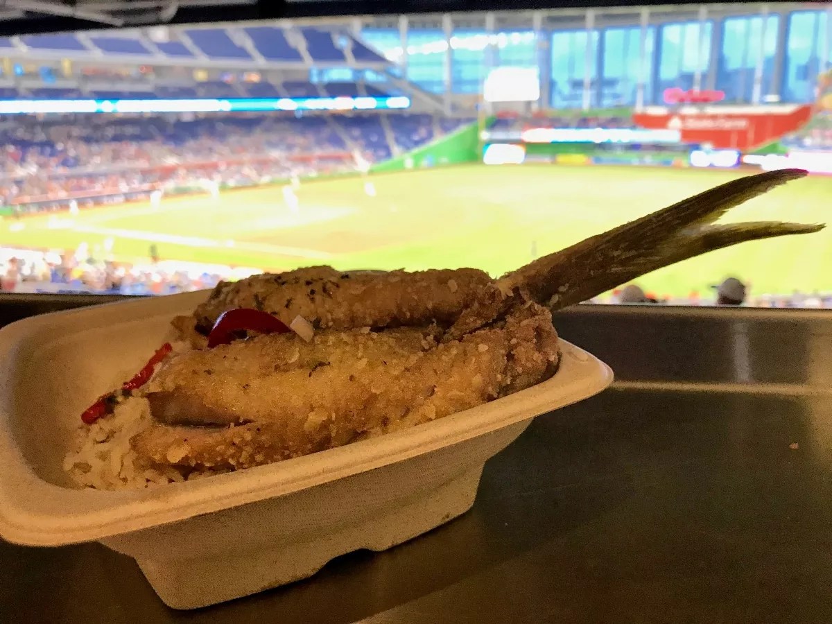 When was the last time you had locally caught seafood at a baseball game? Chef Navarrete wanted to tap into Miami’s proximity to the water with this dish. Yellowtail snapper, delivered daily from a local fishmonger, is butterflied, filleted, lightly fried, and served over rice.The dish is limited to only 30 portions per game (75 portions will be available daily during All-Star weekend) to maintain freshness and to ensure it’s made properly. Says Navarrete: “I’d rather make it right and run out of the item than rush this.”