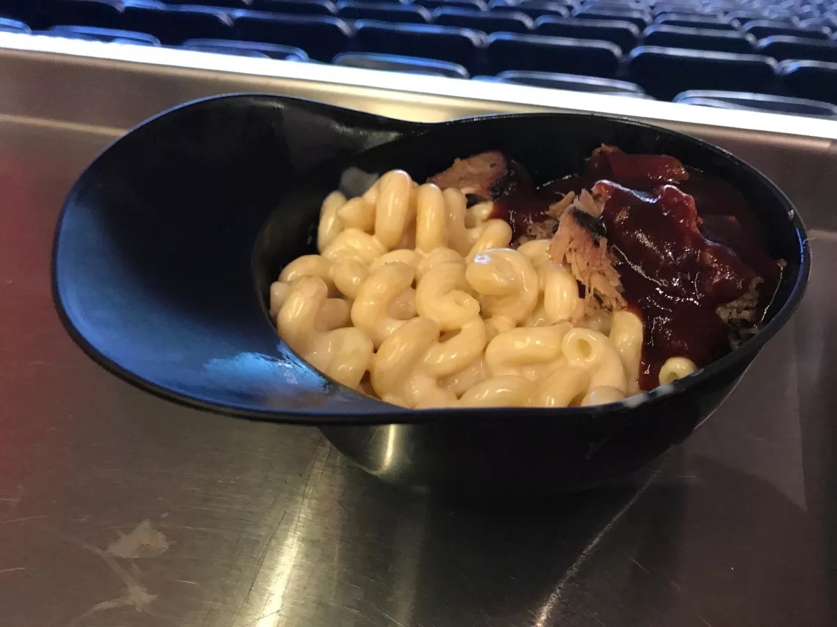 Forget the fact that the pork is cooked low and slow and then topped with a sweet/tangy sauce. Forget that the mac ‘n’ cheese is flavorful and cooked al dente. What you’re really interested in is the fact that it’s served in a Marlins batting helmet, which makes it an instant Instagram hit and makes you feel like you’re a kid at your first baseball game all over again.