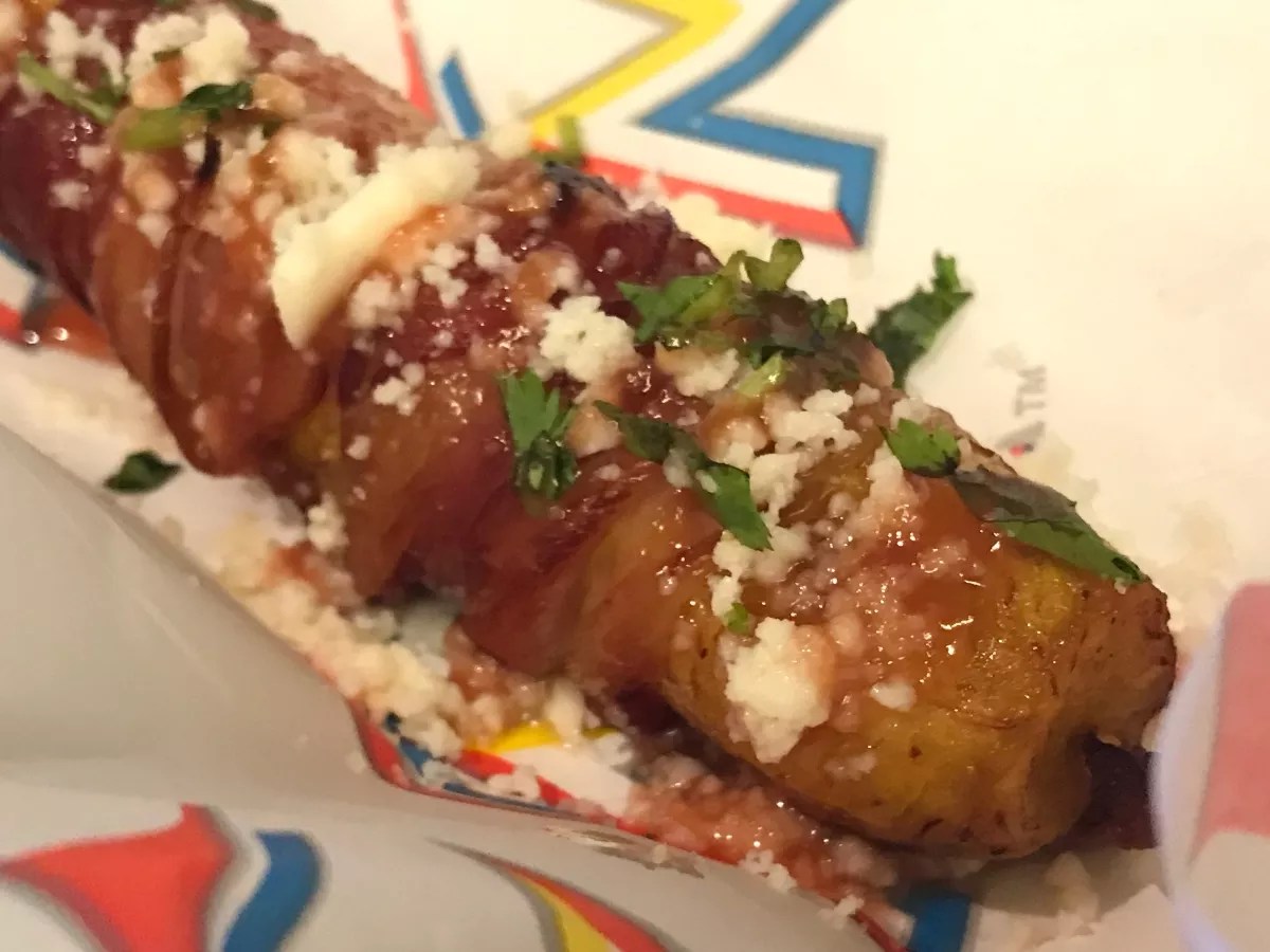 Miami’s version of a corn dog, this item wraps a plantain in bacon and garnishes it with queso fresco. Served on a stick, the sweet, salty treat leaves your other hand free to hold your beer.