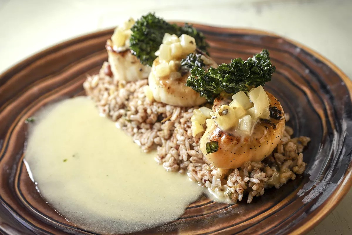 Before long, he ran out of money. So he took up an offer from a friend to help open Jean-Georges Vongerichten’s Hong Kong outpost, Vong. That led Hales back to the United States, to the Mandarin Oriental Miami, which hired him in 2000 to be the Brickell property’s Asian chef (Hales is half Filipino). After some corporate shuffling, he unexpectedly became the sommelier at the hotel’s restaurant Azul, then run by Michelle Bernstein. Pan-seared sea scallops Photo by CandaceWest.com