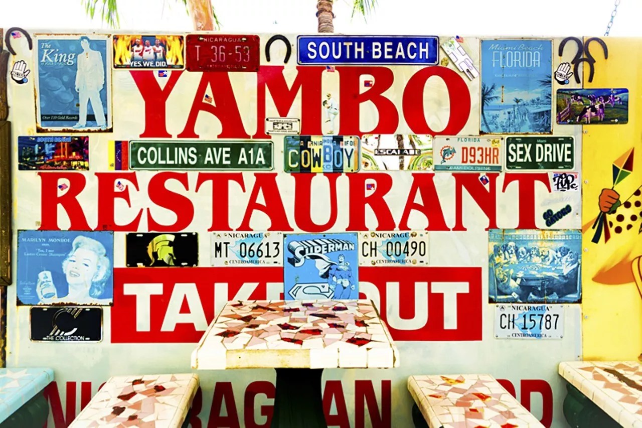 Not far from Little Havana, in a neighborhood of beige concrete apartments, faded storefronts, and former Cuban cigar factories, sits Yambo Restaurant. It’s hard to miss: Out front, bright-red letters on a white sign shout its name. Beneath the sign stand two life-size horse statues chained to white posts as if they might escape.