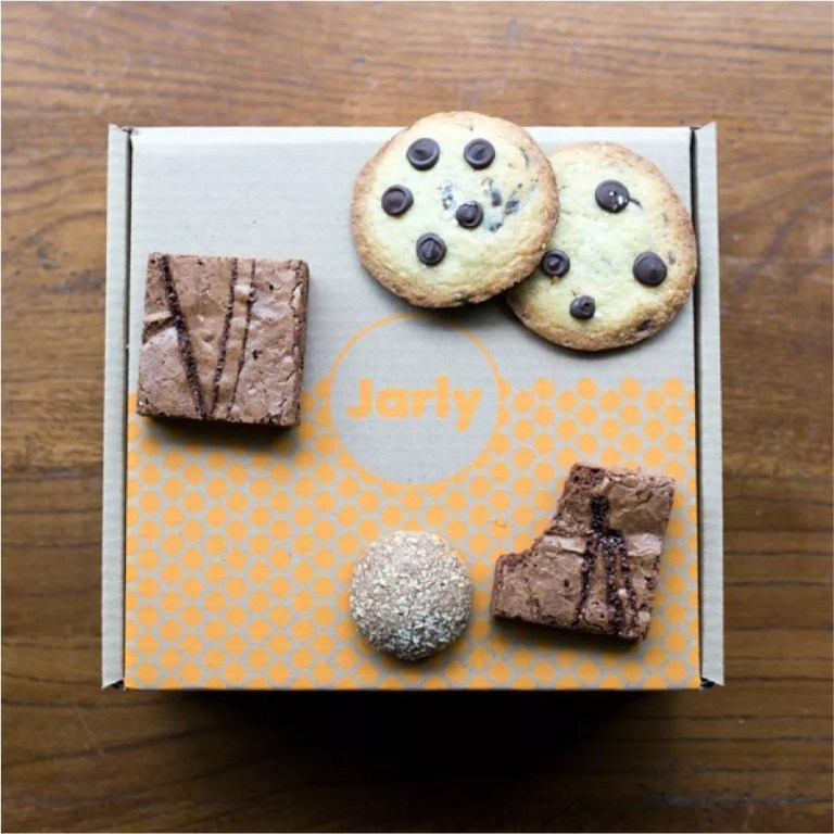 Through Jarly, customers can choose one of two subscription plans – a box delivered once a month or twice a month, plus a delivery fee. Filled with five to seven items from one featured baker, the company ensures a customer won’t encounter the same baker twice.