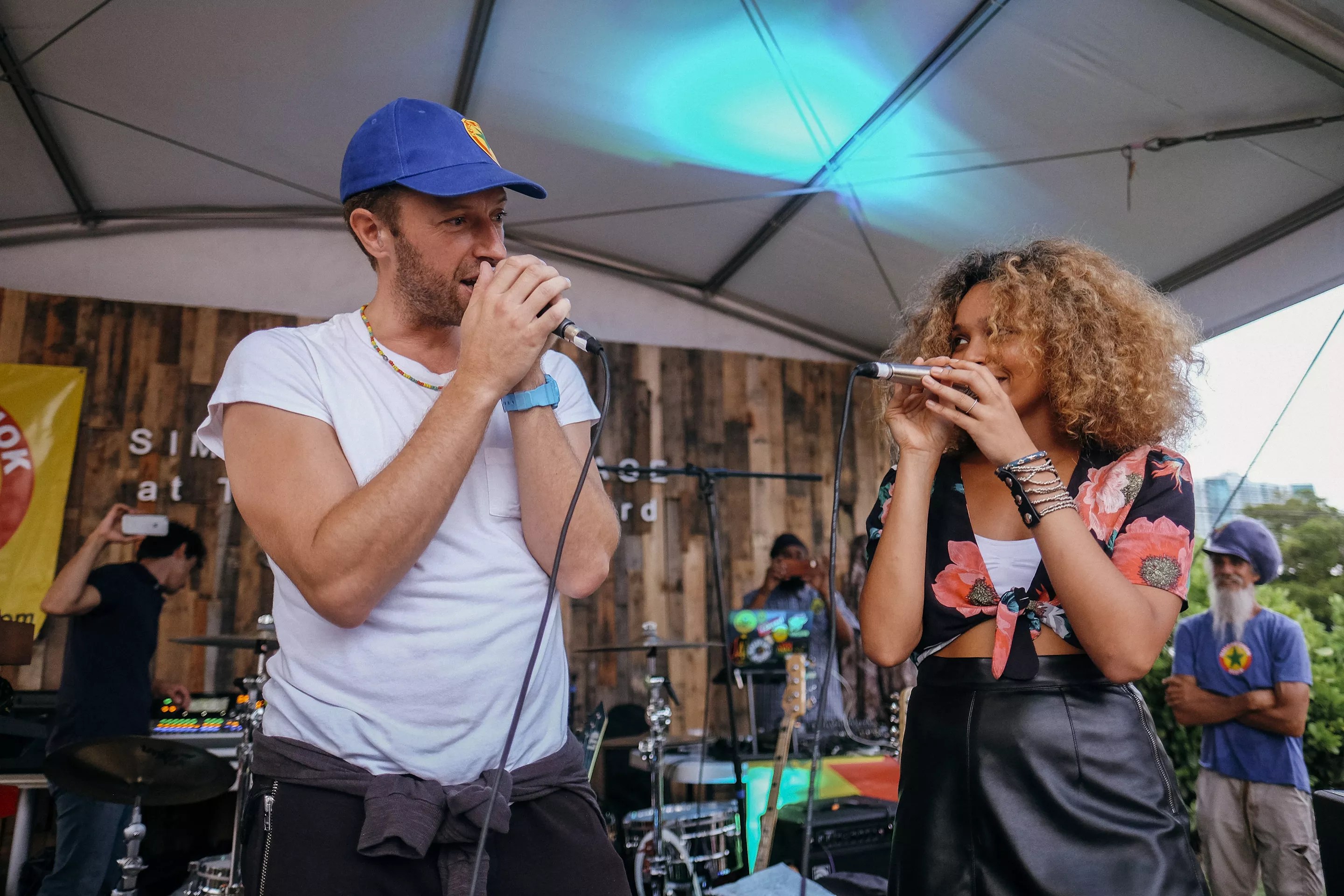 Tonight Coldplay will fill Hard Rock Stadium with thousands of attendees eager to hear Chris Martin’s voice belt out hits like “Yellow” and “Adventure of a Lifetime.” But some fans experienced that excitement early, in a far more intimate venue, when Martin joined Coldplay opening act Izzy Bizu onstage at the Wynwood Yard last night. Bizy and Martin Photo by FujiFilmGirl / Andrea Lorena