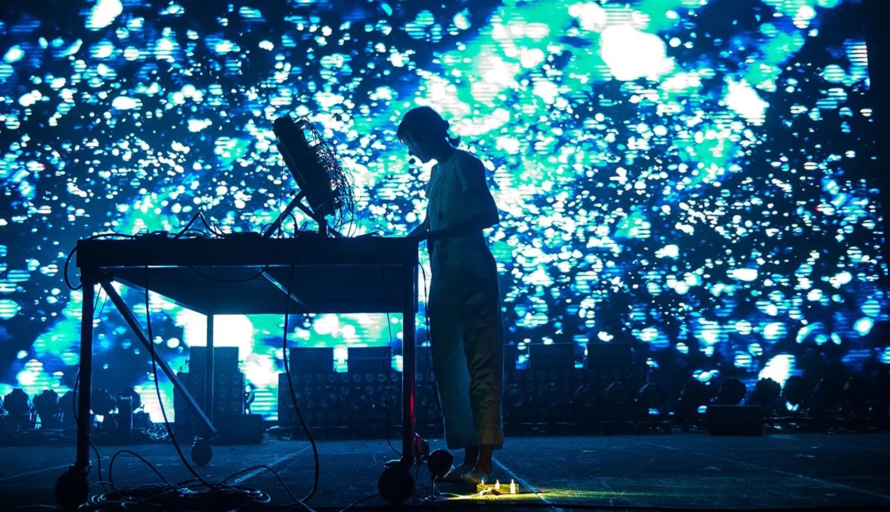 Surrealist electronic folk dreamweaver Kaitlyn Aurelia Smith was about 20 minutes into her early evening set when everything around her went dark. Doors to the festival had only been open for a little over two hours, but III Points now had its first significant technical set disruption. Crowds flowed in and out past the colorfully lit mannequin wall outside the Main Frame stage as dark silhouettes scrambled to correct the issue on stage. Smith thanked the sizable crowd gathered in front of the stage for sticking it out during the agonizing, nearly 10 minute break. When the power came back on, Smith continued her set with songs from her past two albums Euclid and Ears, and her latest, the psychedelic consciousness concept album The Kid. Backlit by visuals depicting bubbling pools of primary-colored powder and shaking Christmas lights that burst into an explosion of onscreen confetti, Smith hit reset after the mishaps and ended her set about 10 minutes late to make up for lost time. – Celia Almeida