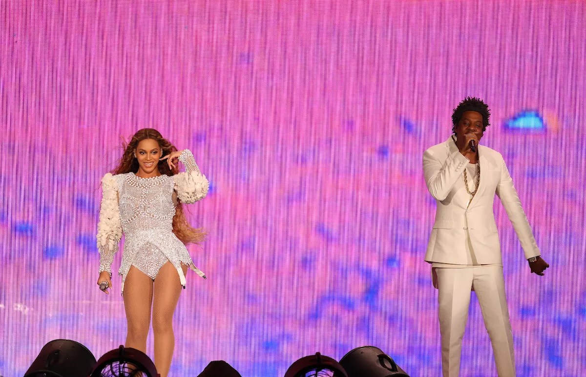 He was alone on the stage, having just finished a medley of “Family Feud” and “Upgrade U” with his superstar wife and tourmate Beyoncé, followed by a solo, crowd-revving version of “Niggas in Paris.” Next on the setlist: “Beach Is Better,” off 2013’s Magna Carta Holy Grail. But a few lines in, with the massive screens behind the