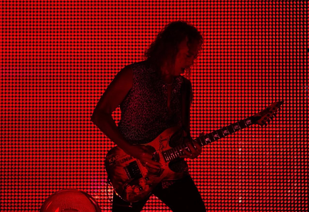 In keeping with tradition, the show opened with a scene from the 1966 Western The Good, the Bad, and the Ugly, featuring a score by the legendary Ennio Morricone, something Metallica has done since 1983. However, the sheer scale of this event outdoes anything the band was capable of in the early part of its career. Behind the band stood four two-story screens. Across from them on the opposite end of the stadium were three columns of cameras and spotlights operated by at least a dozen technicians. Regardless of seat location in the stadium, no fan would miss a single sweaty guitar lick.