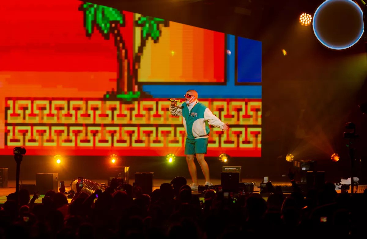 By the time headliner Bad Bunny hit the stage around 11:30 p.m., the crowd’s drinks had kicked in and they got a second wind. As Spotify-branded bracelets lit up the arena, the Puerto Rican leader of the Latino Gang emerged wearing a vintage Florida Marlins jacket with matching teal shorts, a surgical mask, and light-up shades. His left-field fashion choices were a reminder of how quickly he’s gone from Latino urbano’s oddball to its leading trendsetter. Throughout his nearly one-hour set, Bunny mostly ran through songs from his surprising and adventurous debut album, X 100pre and Oasis, his collaborative album with J Balvin. Among the songs he played were “Callaíta,” the “Te Bote” remix (it’s puzzling why he and Jam didn’t just play it together), and “Estamos Bien,” the latter being among the songs the crowd screamed the loudest.