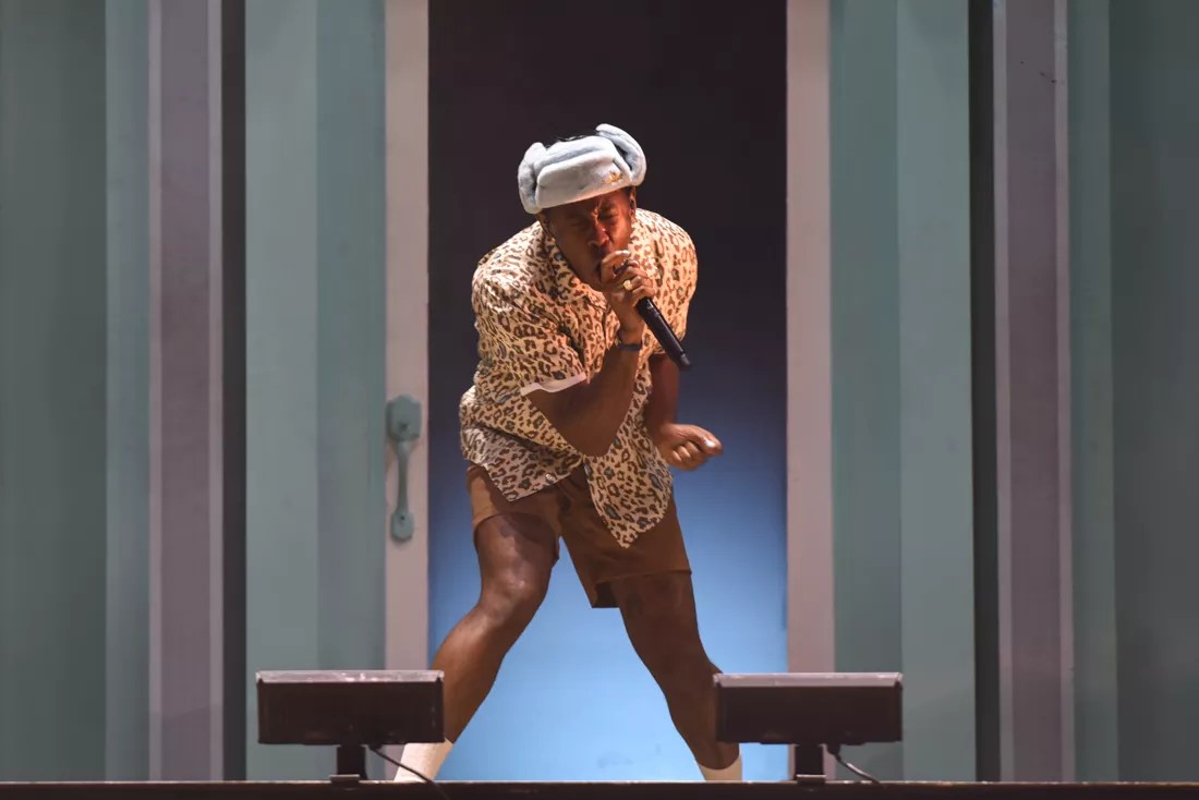 Finally, around 10 p.m., they were rewarded with Tyler slowly rising out of the stage in the backseat of an aqua-hued replica of a 1939 Rolls Royce. He spat lyrics from his newish track “Sir Baudelaire,” asking everyone, “Y’all ready?” They certainly were, as literal fireworks went off from the rafters and the façade of a two-story country house was revealed as the backdrop.