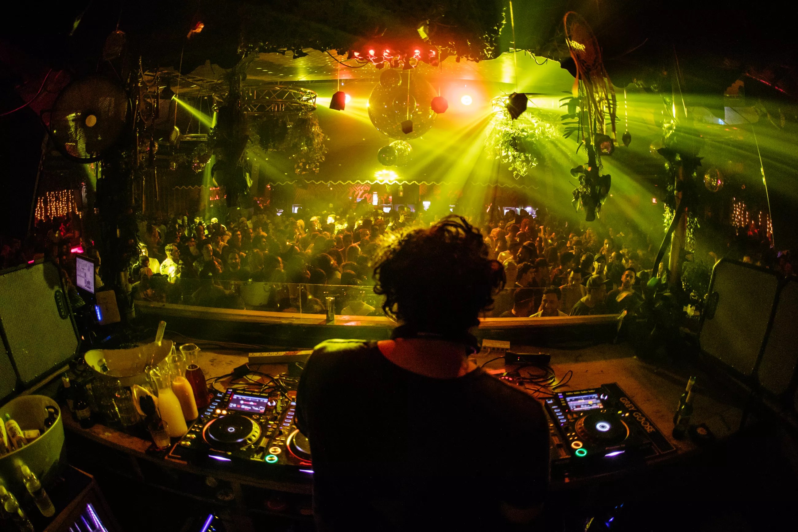 Around 3 a.m., a mania took hold. Dancers gifted cigarettes to strangers. Bros grabbed one another’s heads in disbelief. And couples could be seen necking between flashes from the strobe lights. A similar frenzy gripped the DJ booth as it was overwhelmed by the sound from the speakers surrounding the decks as well as the cheers emanating from all around. That unmistakable look of “Did you see that shit?!” diffused throughout the booth. A fan handed Reynolds and Marbs a custom vinyl slip mat. Desert Hearts proceeded to repay this act of kindness via hours of sonic insanity, spanning acidic, rubbery tech house and anguished calls for mass social action, to say nothing of the welcome appearance of Khia’s “My Neck, My Back” courtesy of Reynolds around 9 a.m.