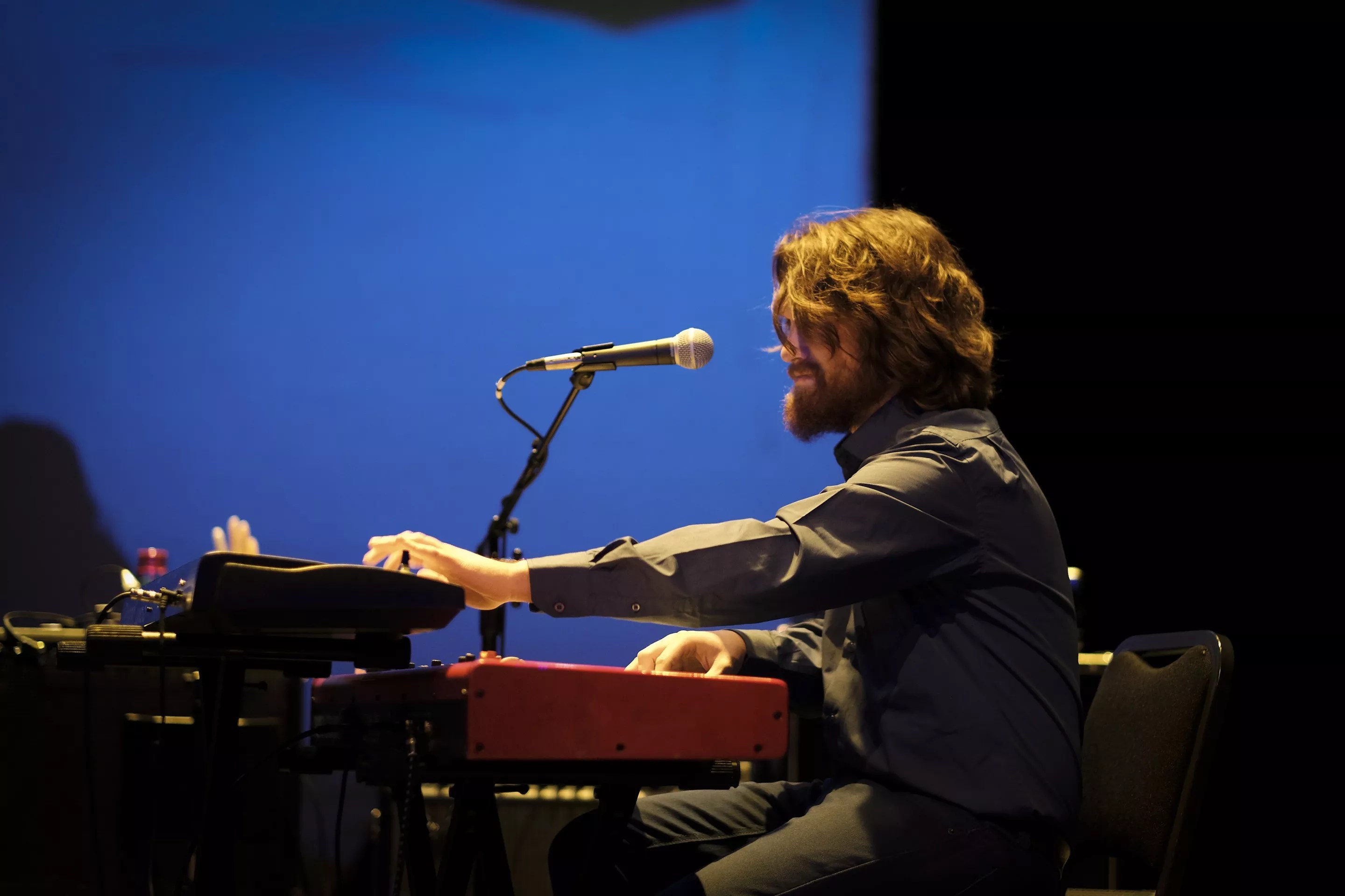 On record, the band members excel in balancing the expansive with the intimate, sometimes placing gentle acoustic ballads next to complex, orchestral opuses. They attempted to do the same here, and mostly did very well. Their stage presence was unfussy, unpretentious, and focused solely on making their music well and weathering the many instrument changes required, from upright bass and bowed guitar to jazz flute and bass clarinet. They seemed to know just what to do to make a song more special, whether it meant changing the key, going straight into the next song to link them together, or embellishing on the original part. Pecknold did this frequently with his vocals, singing notes higher or drawing out certain ones. His voice sounded somewhat muted at times, however, and he occasionally softened at higher pitches, seemingly to save his energy for exposed, solo acoustic numbers such as “Tiger Mountain Peasant Song.”