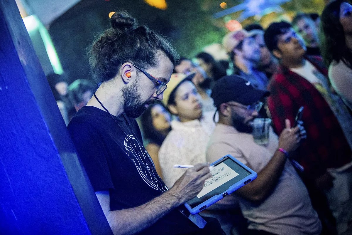 If you’ve gone to a show in South Florida in recent years, then it’s more than likely you’ve caught a glimpse of illustrator Brian Butler doing his thing. Equipped with a sketchbook, you can usually find Butler in the corner of the room stealthy sketching all of the crazy shit happening in real-time. Whenever you see him, you can pretty much guarantee it’s going to be a good show. And if you’ve made it into one of his drawings as a band or an audience member, consider yourself in the Miami music Hall of Fame.