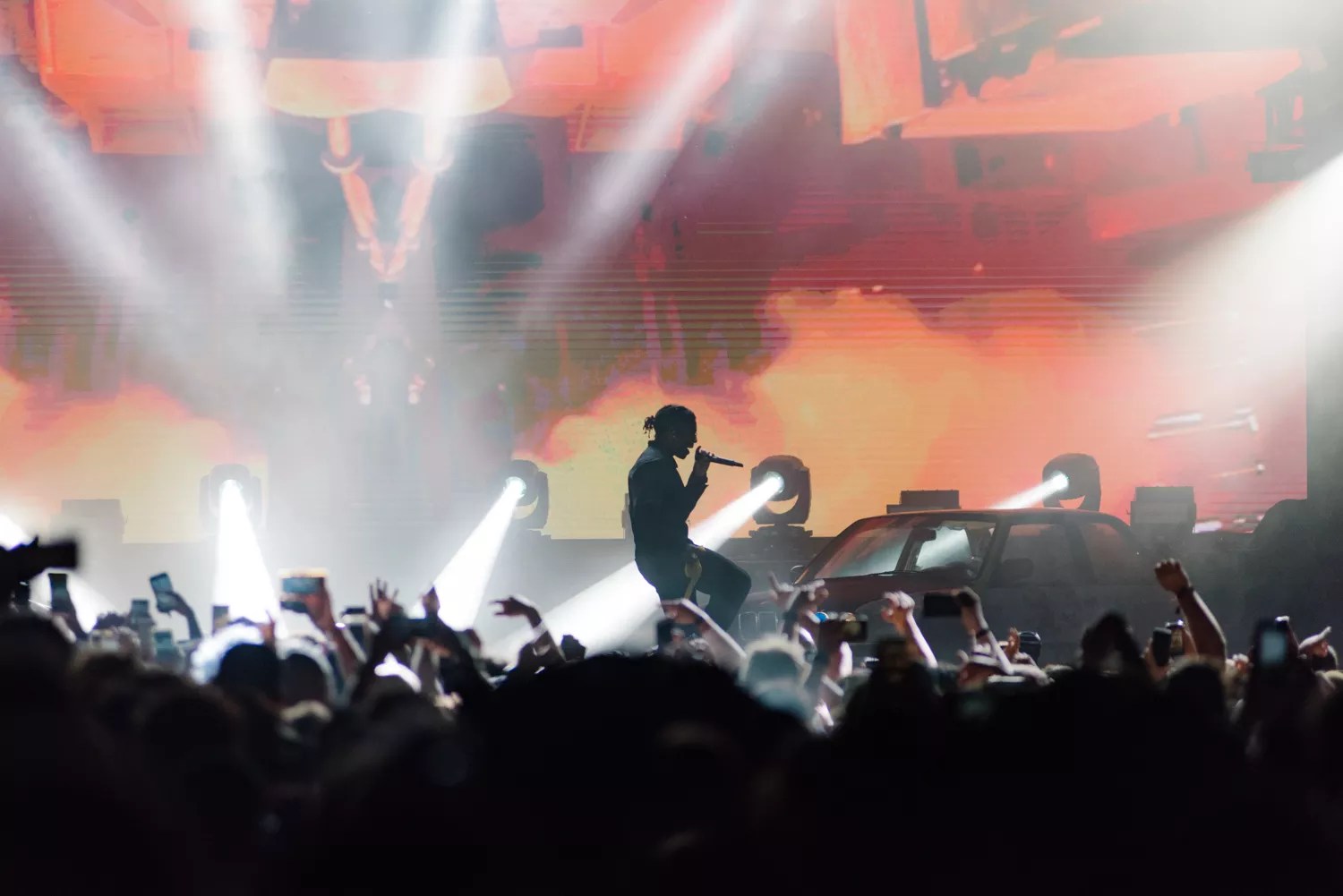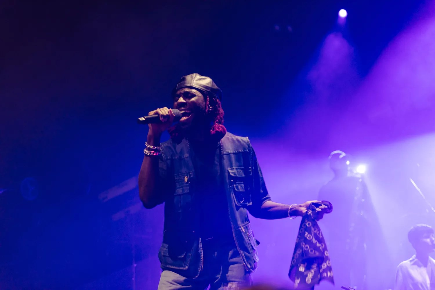 ASAP Rocky. Despite raising my L’s to his music since 2011’s “Purple Swag,” the universe had not yet allowed me to be in Rocky’s proximity for a live show – until last night. After nearly a decade of waiting for Pretty Flacko, the extra 37 minutes spent standing in front of the Mind Melt stage anticipating his arrival felt like an eternity. On day three of the marathon festival, some attendees were looking haggard as the clock inched past Rocky’s scheduled 12:30 a.m. start time. With dry red eyes and a scratchy throat from a long weekend of cheering and standing in smoke, I wondered whether the crowd sitting on the ground around me would be able to summon the energy for a show like this. Could we, would we, get lit? When Rocky finally appeared onstage, he was standing behind a large black screen, his silhouette further heightening the buildup. I was hoping he’d jump straight into a hit to jolt us back to life, but his choice to start slow and psychedelic didn’t seem to affect the audience’s attention. Though we were all clearly ready to kick up the energy level, it did feel like a special reward for our
