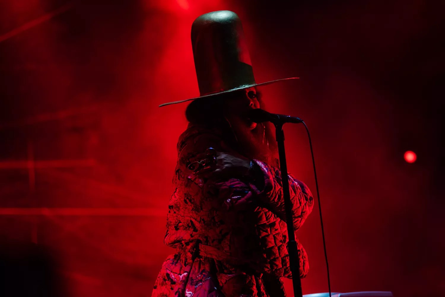 Badu took the stage while excerpts of her viral-before-viral-was-a-thing hit “Tyrone” blasted over the crowd. Wearing her signature sky-high stovepipe hat, she delivered a set that spanned her