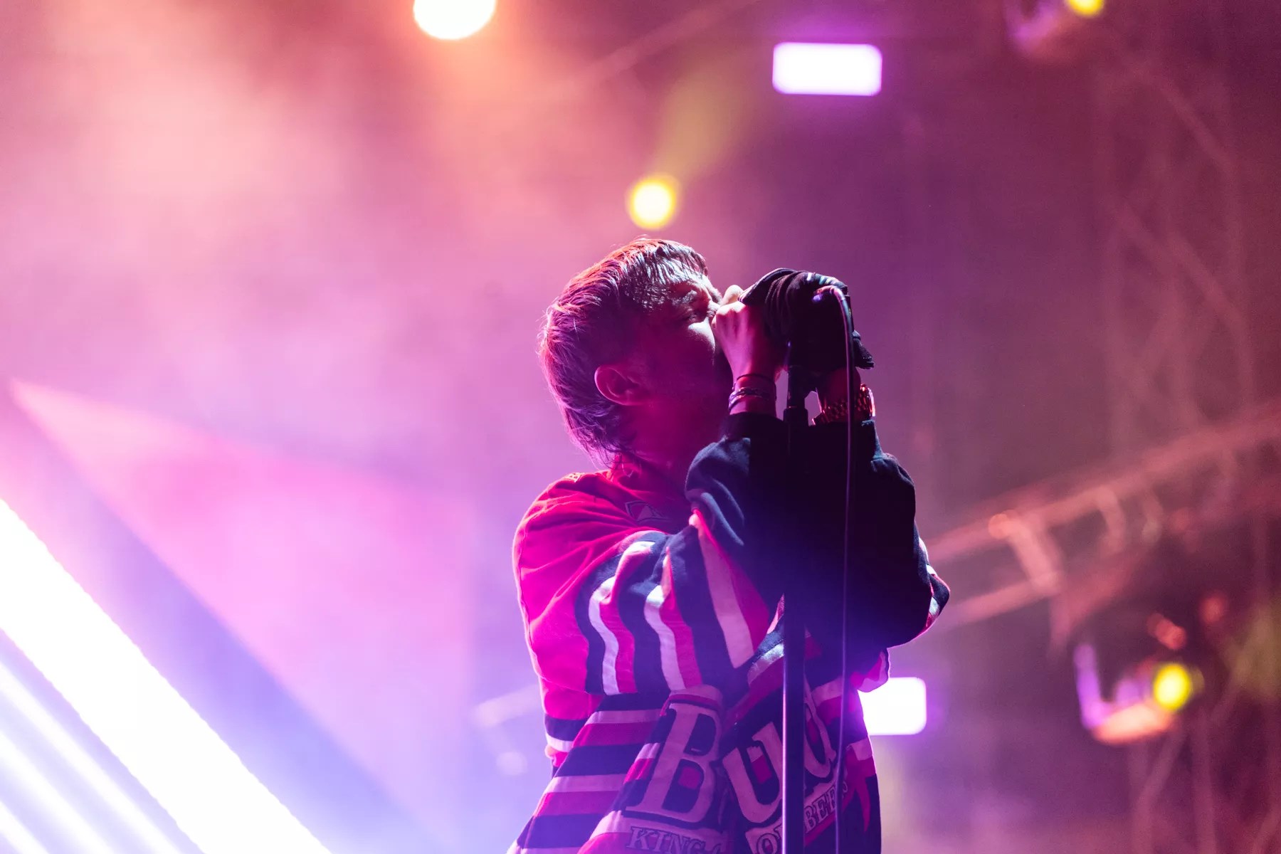 With an hour delay, a soaked crowd, and blue tarps over the band’s equipment, it did seem like the dream of seeing the Strokes perform live was dead. However, it wouldn’t be III Points without some Miami perseverance, and the Magic City finally got a taste of the New York City band. “Hard to Explain” kicked off the set and instantly gave way to early 2000s nostalgia. The audience danced and shook off the rain while singing along to every song. What came next was a slew of classics from the Strokes’ nearly 25-year discography. The band managed to play hits from its debut album, Is This It, to those signature chord progressions of “Reptilia” off Room On Fire. The Strokes also threw in songs off their latest album, The New Abnormal. Frontman Julian Casablancas carried the show with his droopy vocals and persona while guitarist Albert Hammond, Jr., shredded the humming-inducing rifts we all know and love. Casablancas delivered odd shtick, rambles, and philosophies between songs that left more questions than answers. Still, the speedy visuals and a familiar drum pattern from Fabrizio Moretti would ring out and all would be forgotten. It’s hard to say the rain brought any poetic justice or symbolism – but wet clothes are temporary; the Strokes are forever. Grant Albert Maceo Plex entrances the III Points crowd. See more photos from III Points 2021 day one here. Photo by Karli Evans