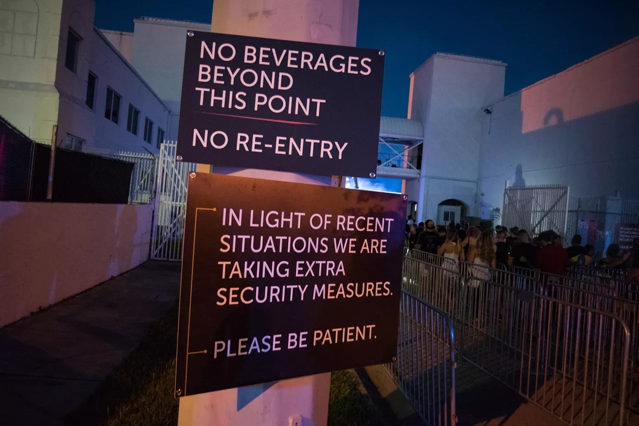 The first and only reminder that American music fans are now living in a post-Vegas world came as the hordes of attendees entered the festival. Signs adjacent to the entrances read, “In light of recent situations, we are taking extra security measures. Please be patient.” Attendees’ bags were thoroughly searched at the main gates, and guests were scanned with handheld metal detectors.