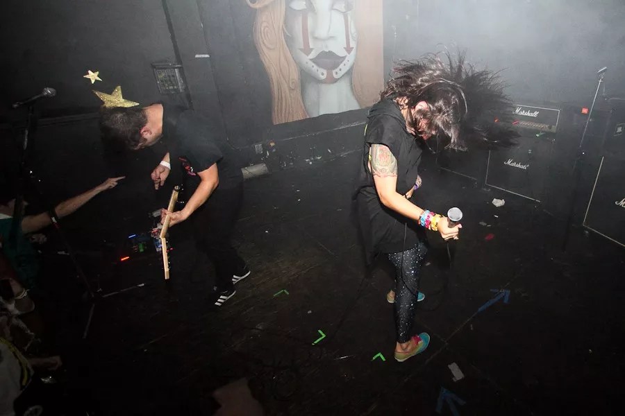 With only an album’s worth of material – a very short album at that, clocking in at a little over 32 minutes – Krauss and Miller performed a chaotic 38-minute set. “The hardcore-meets-pop duo’s crunk beats, metal riffs, and arena-sized energy unlocked the slam dancers, fist pumpers, and lyric shouters all eager for the license to swarm the dance floor,” wrote Reed Fischer, the former New Times Broward-Palm Beach music editor, in his review of the show.