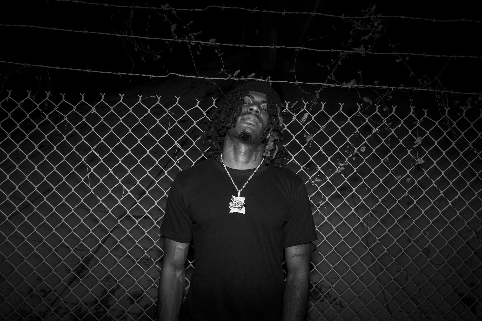 “When I was in high school, I was big on working out ’cause I played football, so I got accustomed to being in a weight room. And one thing that I loved was when I played good music – like high-energy music. It gave me that extra push when I’m under the bar,” he explains. “When I started making music, I wanted to give music that made people give them an extra push, so it’s like with those flows.”
