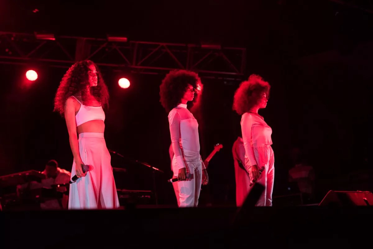 Watching Solange and her crew perform Saturday evening was like watching a perfectly framed and composed still image breathed to life. Every move, clap, and sashay was immaculately staged and choreographed. Unfolding under the watchful gaze of a single blood-red circle suspended at the center of the stage, the show – undoubtedly rehearsed – appeared effortless. It was a live photographer’s wet dream.