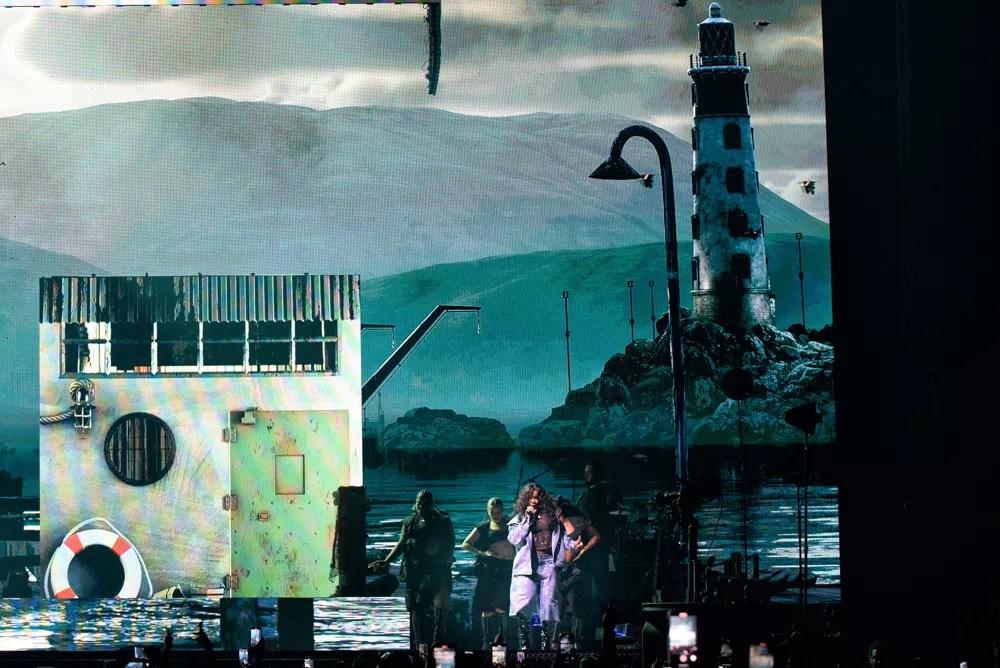 When SZA appeared on stage, she recreated the cover of her sophomore album, SOS, complete with a diving board and backdrop of ocean waves. During the nearly 90-minute set, she performed more than 30 songs, including “Drew Barrymore,” “Love Galore,” “Kiss Me More,” and “Kill Bill.” The show used cinematic visuals to great effect, mesmerizing the crowd with the spectacle on stage. For a complete overview of the night, check out David Roland’s review of the show.