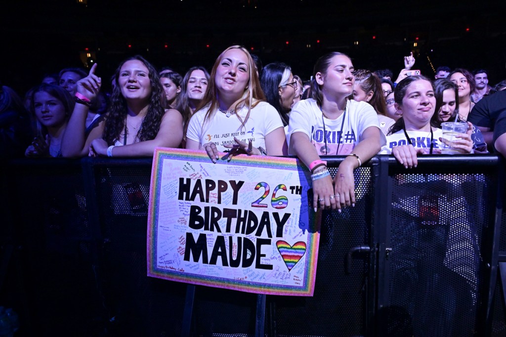 By the time he hit the stage, emerging from the back in a cloud of sparks, the sold-out crowd was already warmed up, thanks in part to an energetic opening set by Maude Latour. The alt-pop singer used the occasion to celebrate her birthday, which fans acknowledged with handmade signs and a chorus of birthday wishes. After her set, Latour posted up at the merch table to meet fans one-on-one, a move that added to the intimate feel of the night.