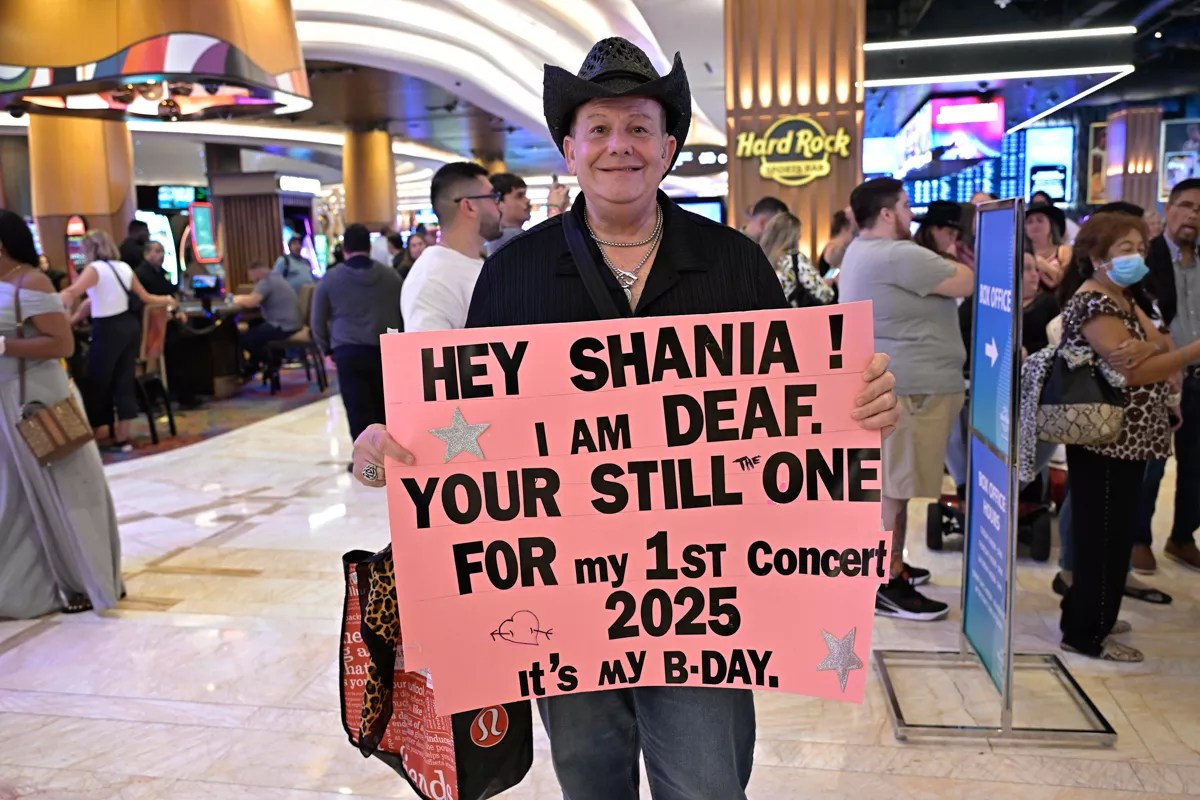 The crowd brought their A-game too, donning cowboy hats, fringe, and bedazzled denim. Homemade signs declared devotion to the Canadian queen, and the energy in the room was palpable. Everyone – from longtime fans to newcomers raised on ’90s playlists – was there to celebrate a living legend. Fans at the Shania Twain concert at the Hard Rock Live. Photo by Michele Eve Sandberg/@micheleevephoto Fans dressed up for the occasion. Photo by Michele Eve Sandberg/@micheleevephoto